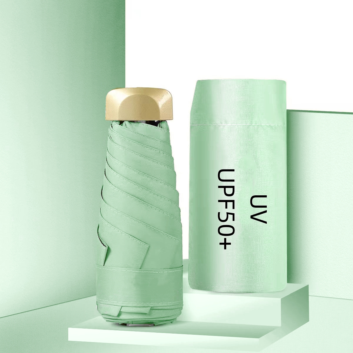 Mini Sun Umbrella Pocket Rain Umbrella Vinyl Folding UV Protection Travel Parasol Capsule, Compact Sun Shade Gift green