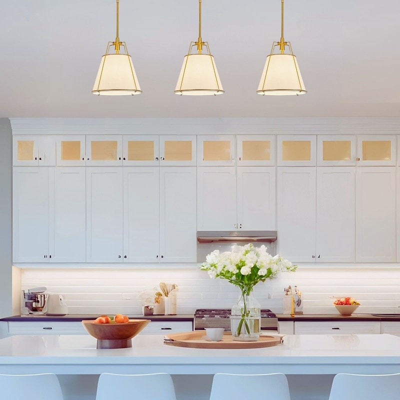12” light bulbs metal kitchen light gold off white shade of light - N/A