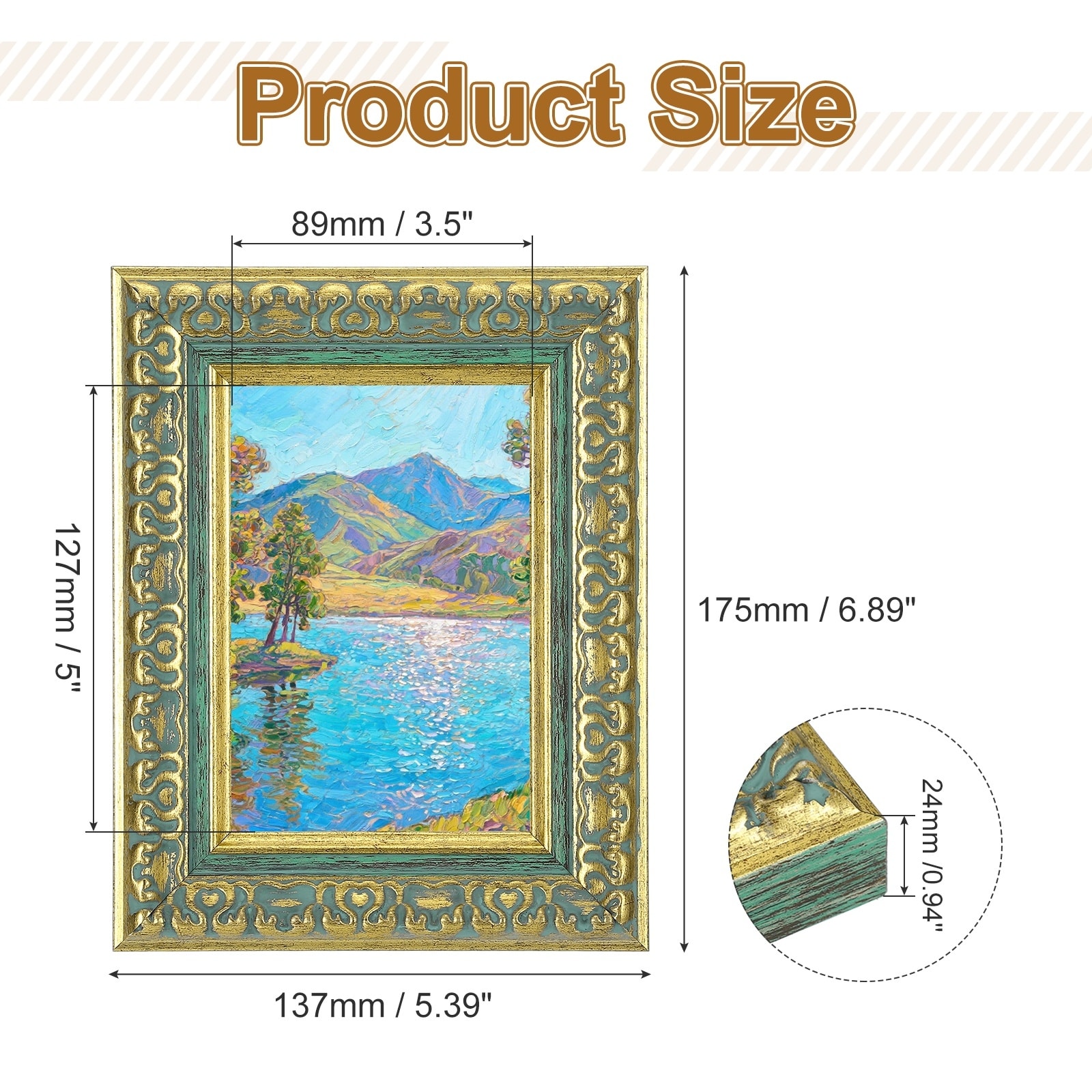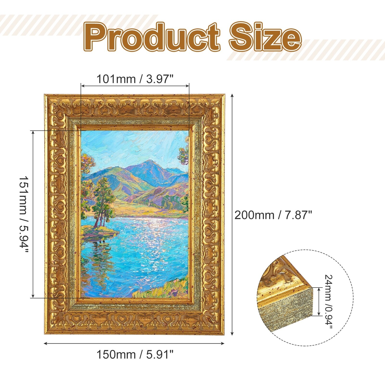 European Style Photo Frame, Rectangle Resin Vintage Picture Frame Tabletop Display for Home Office Decor