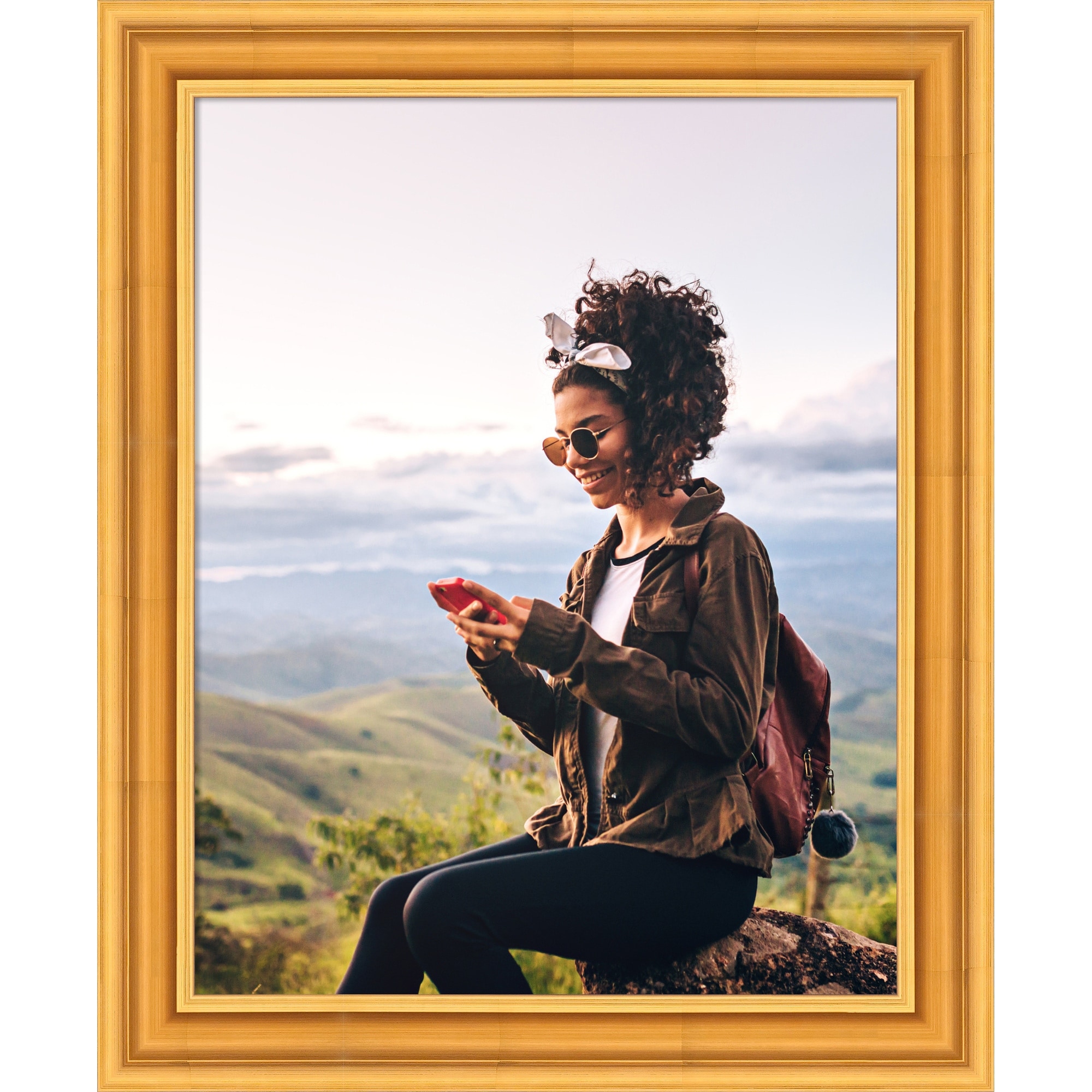 Stainless Steel Wide Rectangular Picture Frame - for 4" x 6" Photo - Gold