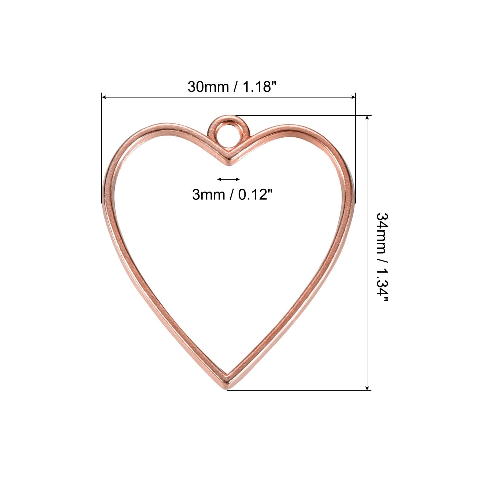 Alloy Open Back Bezel Pendants, Heart Shape Hollow Resin Pendant Frame for DIY Crafts - Rose Gold - 50 Pcs