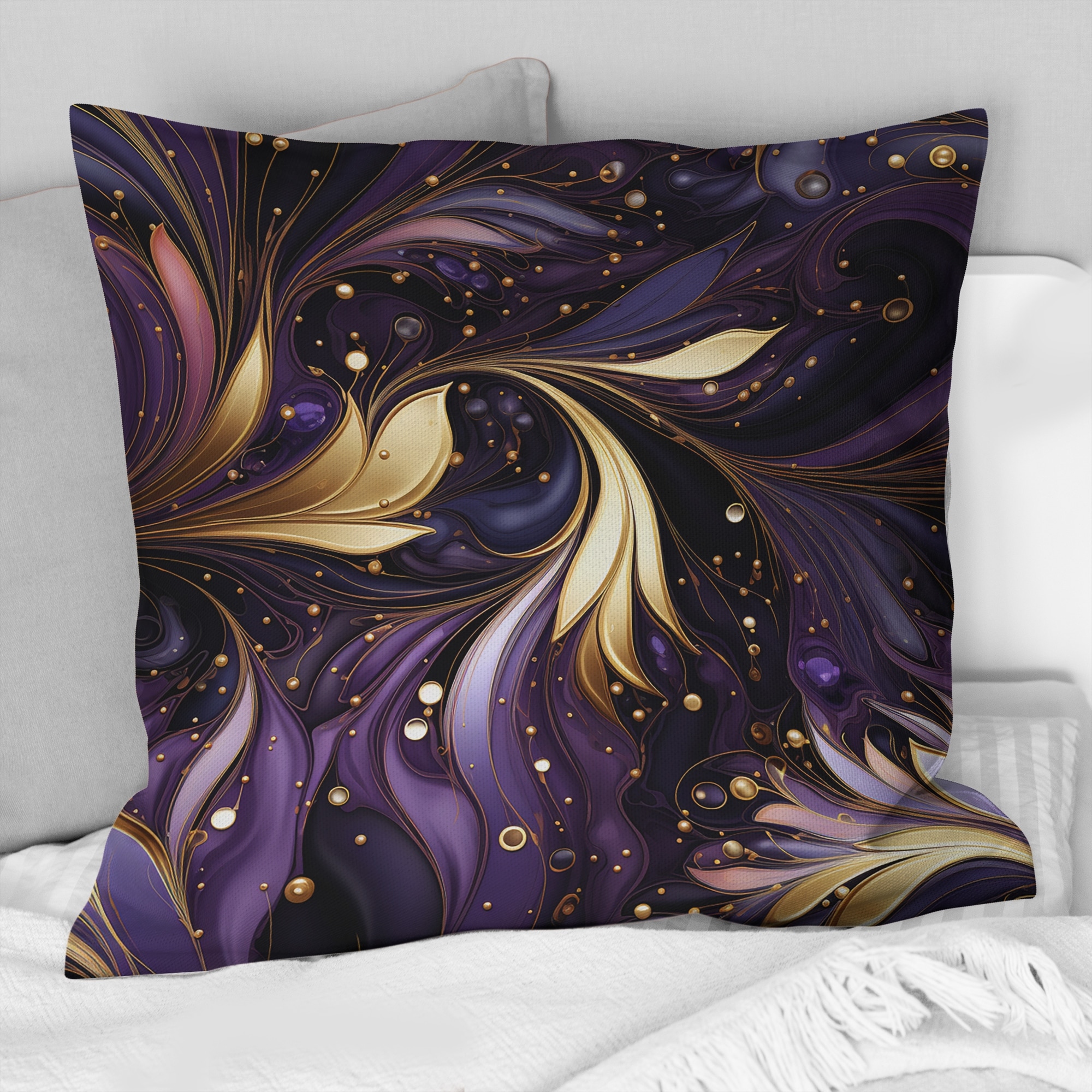 Designart "Gold And Purple Amethyst Marble Pattern" Marble Printed Throw Pillow