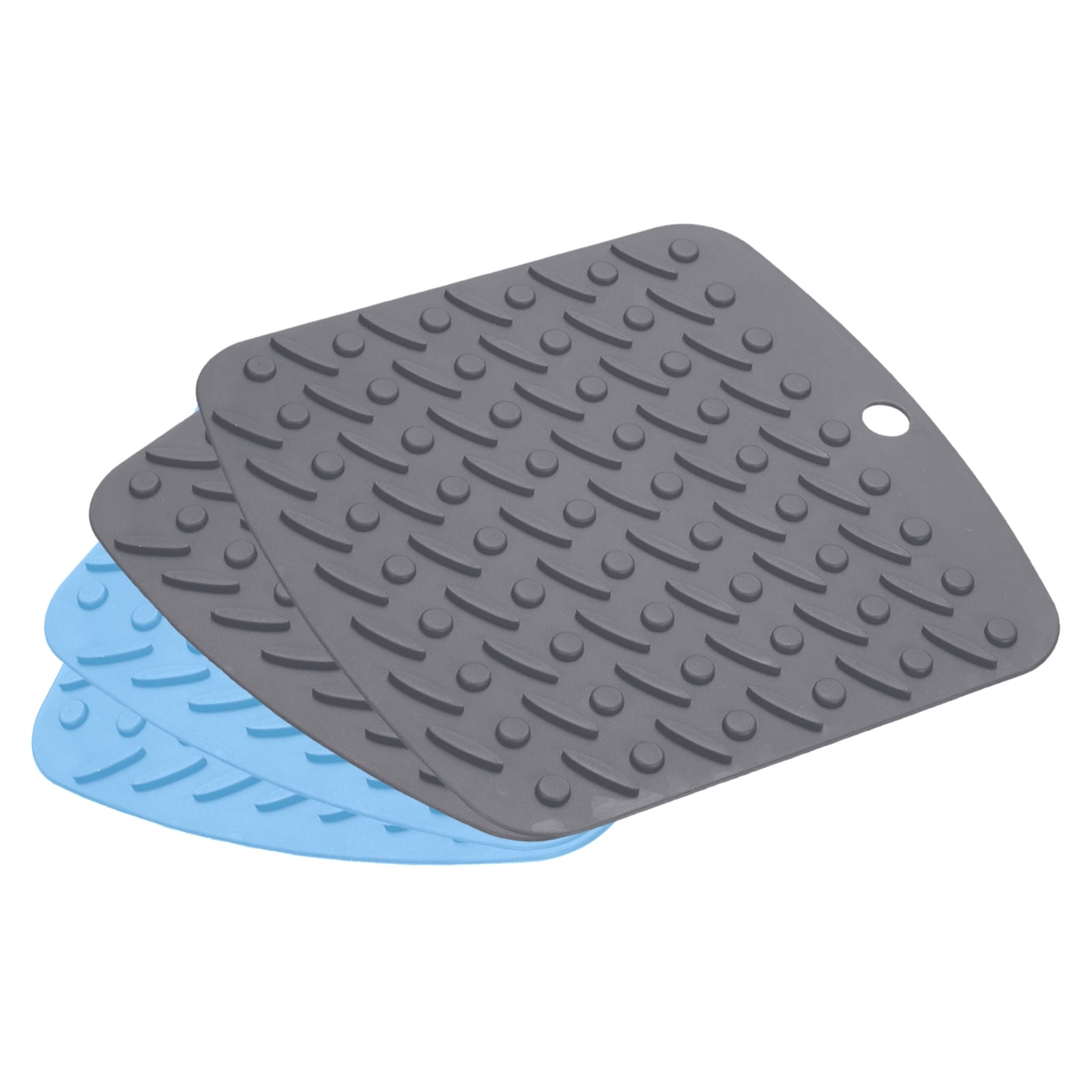4pcs Silicone Trivet Mat Kitchen Hot Pads Table Placemat for Pots Dish - Sky Blue/Dark Grey