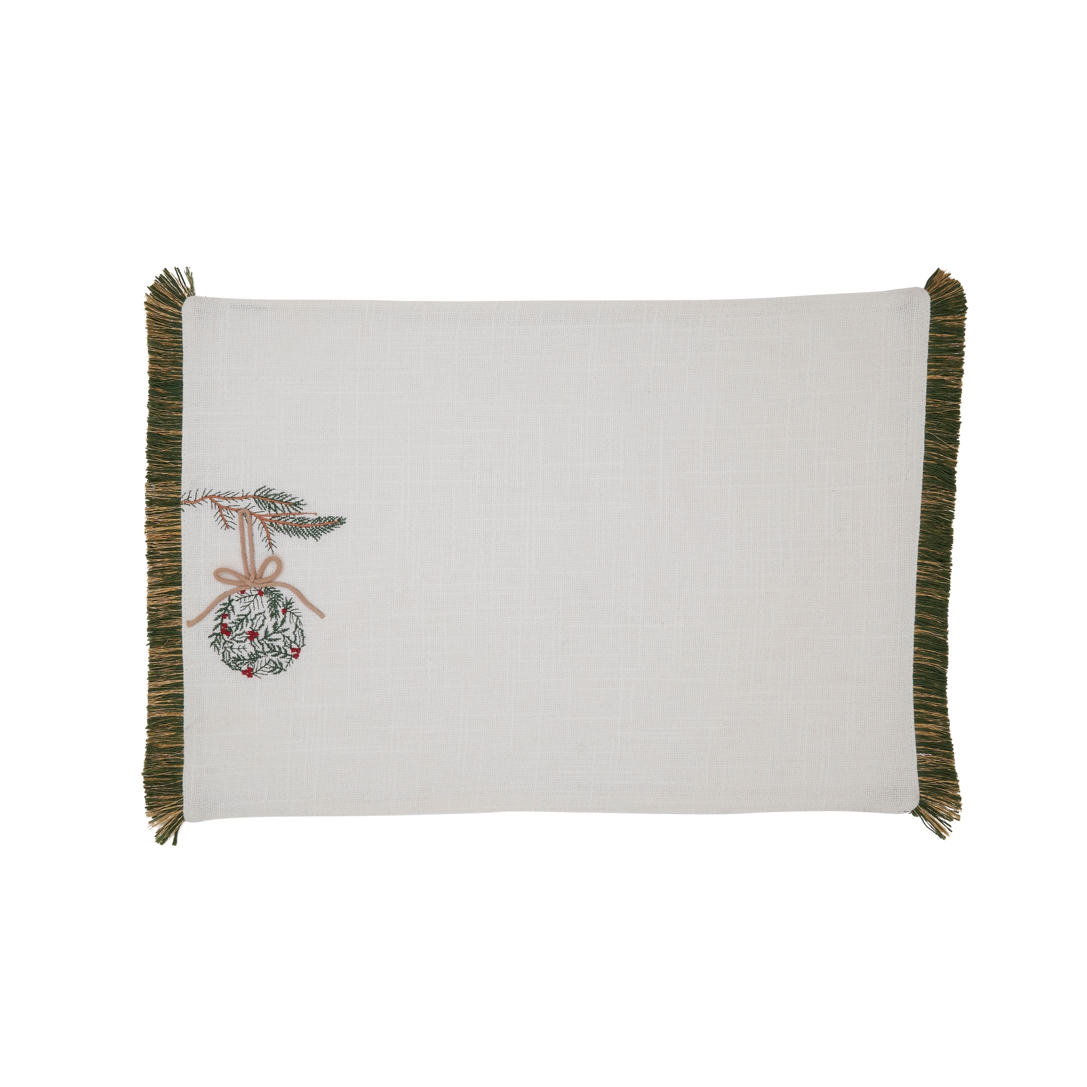 Christmas Candle Beige Lace Embroidered Cutwork Round Placemat, 12" dia.