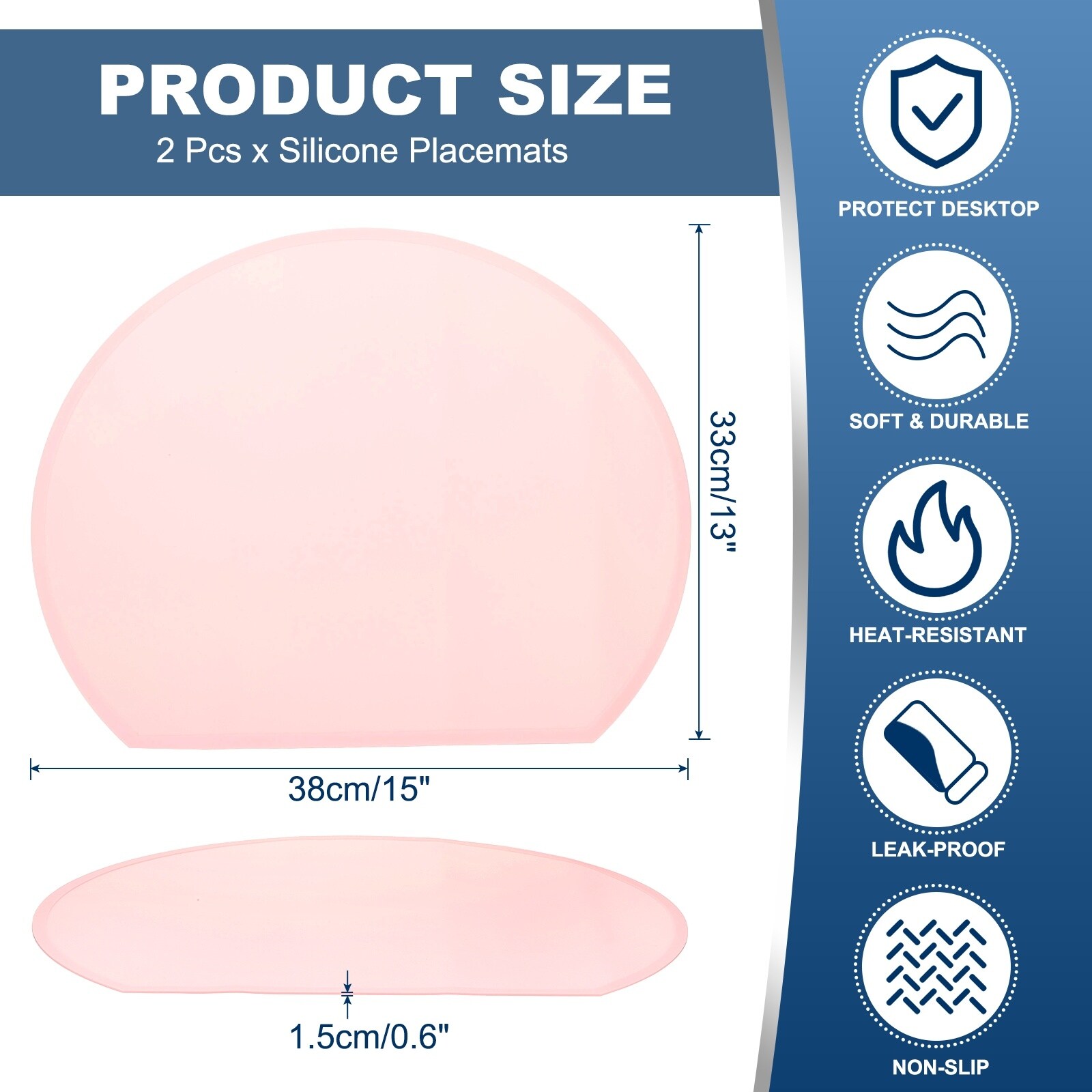 Silicone Placemat, Heat Resistant Placemats for Dining Table Semicircle Non-Slip Place Mats Easy to Clean Waterproof Oil Proof
