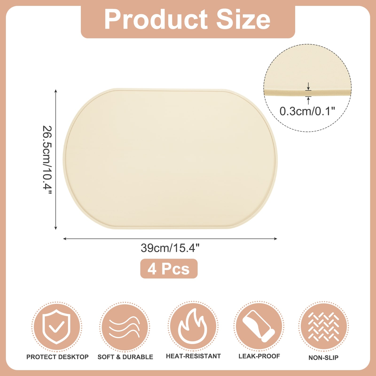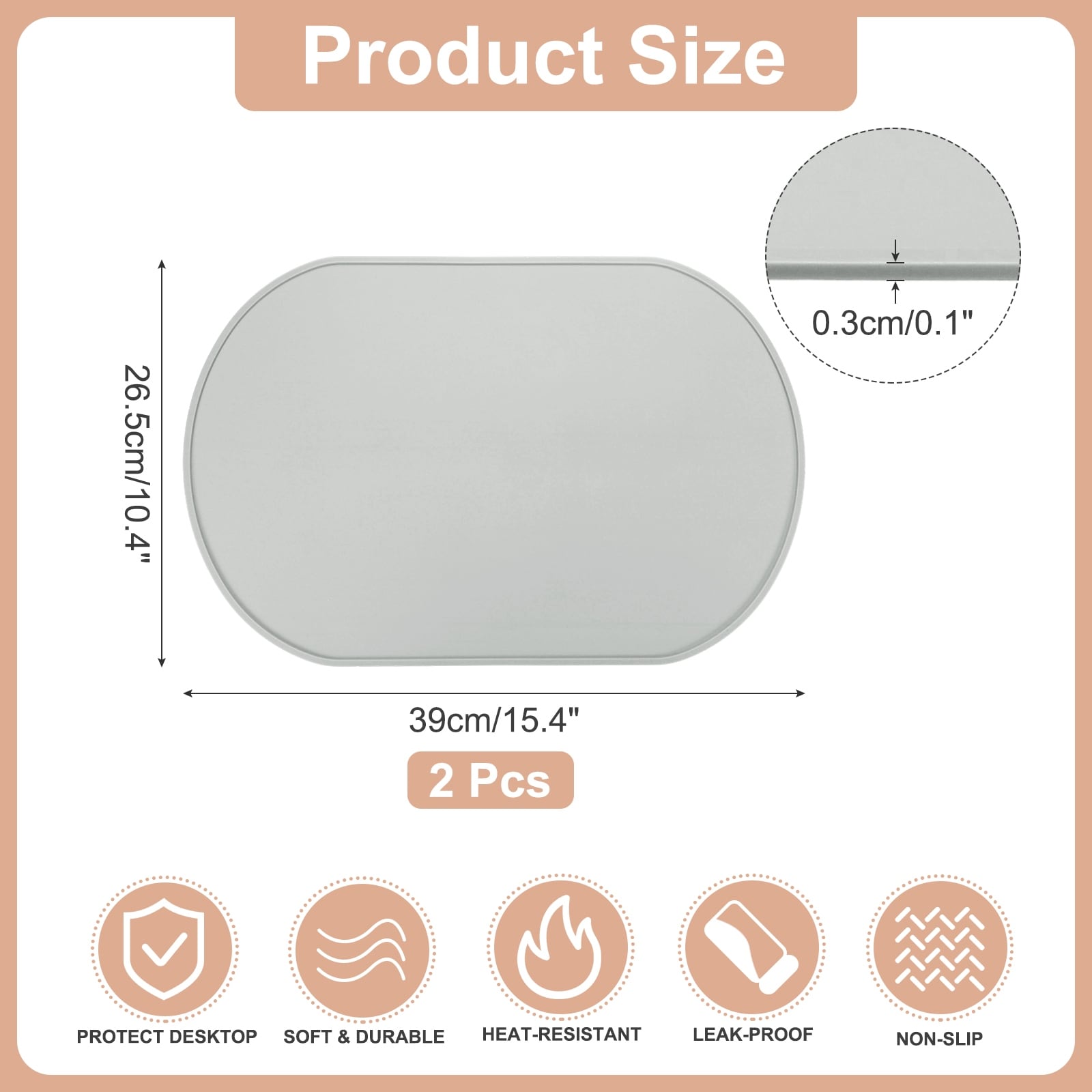 Oval Silicone Placemat, Non-Slip Washable Table Placemats Heat Resistant Waterproof Mat with High Edge for Kitchen