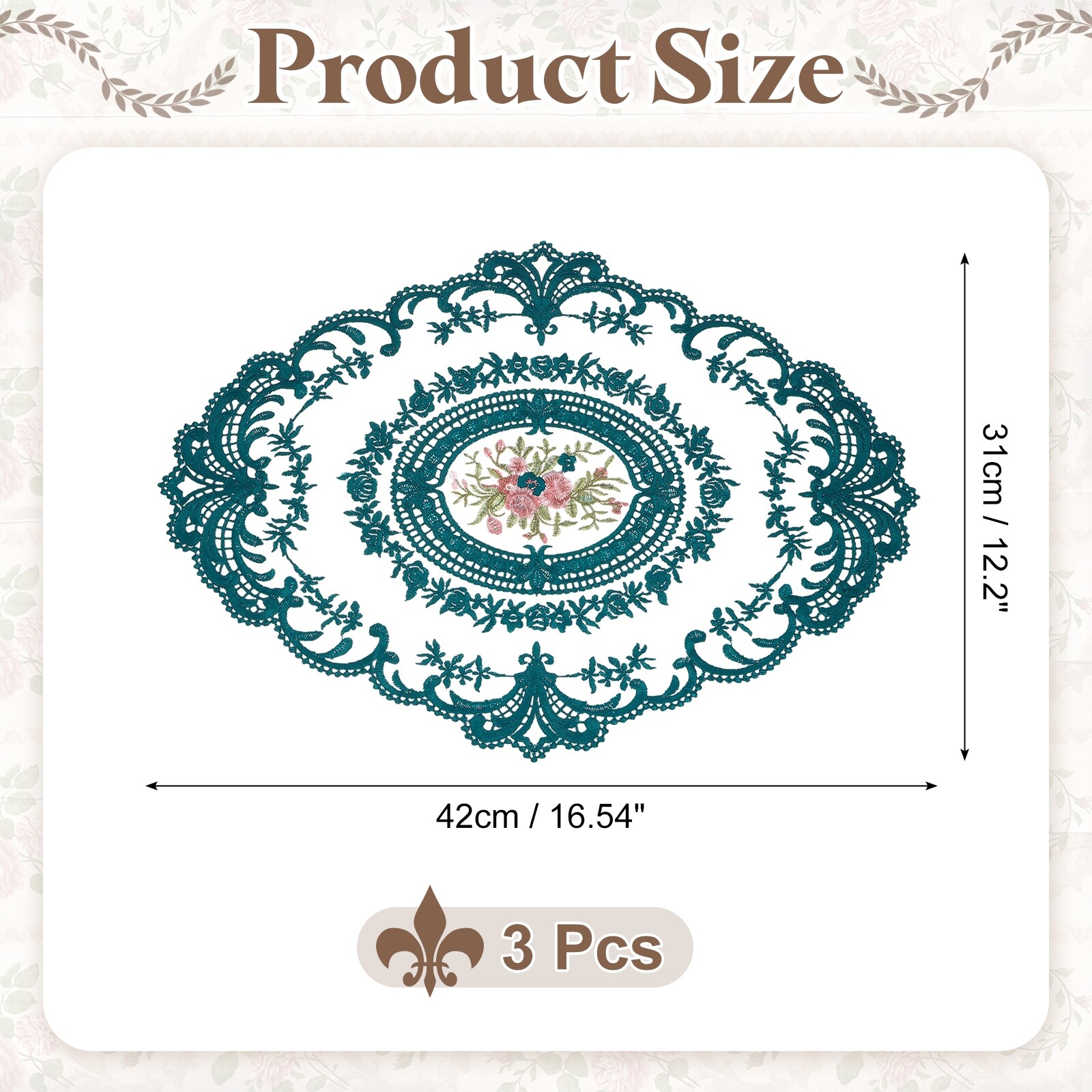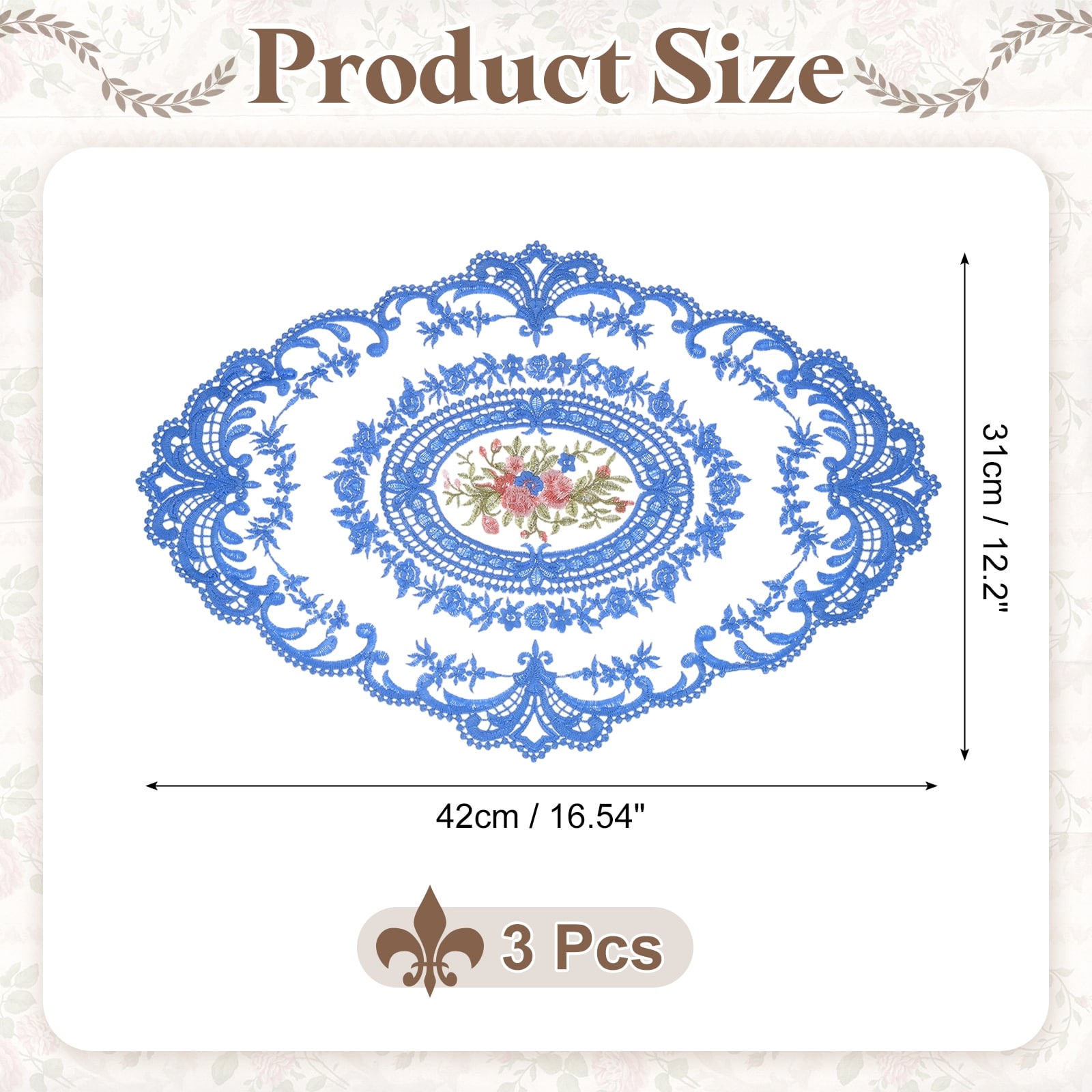 3 Pcs Retro Lace Placemats, 12x17-in Vintage Table Doilies