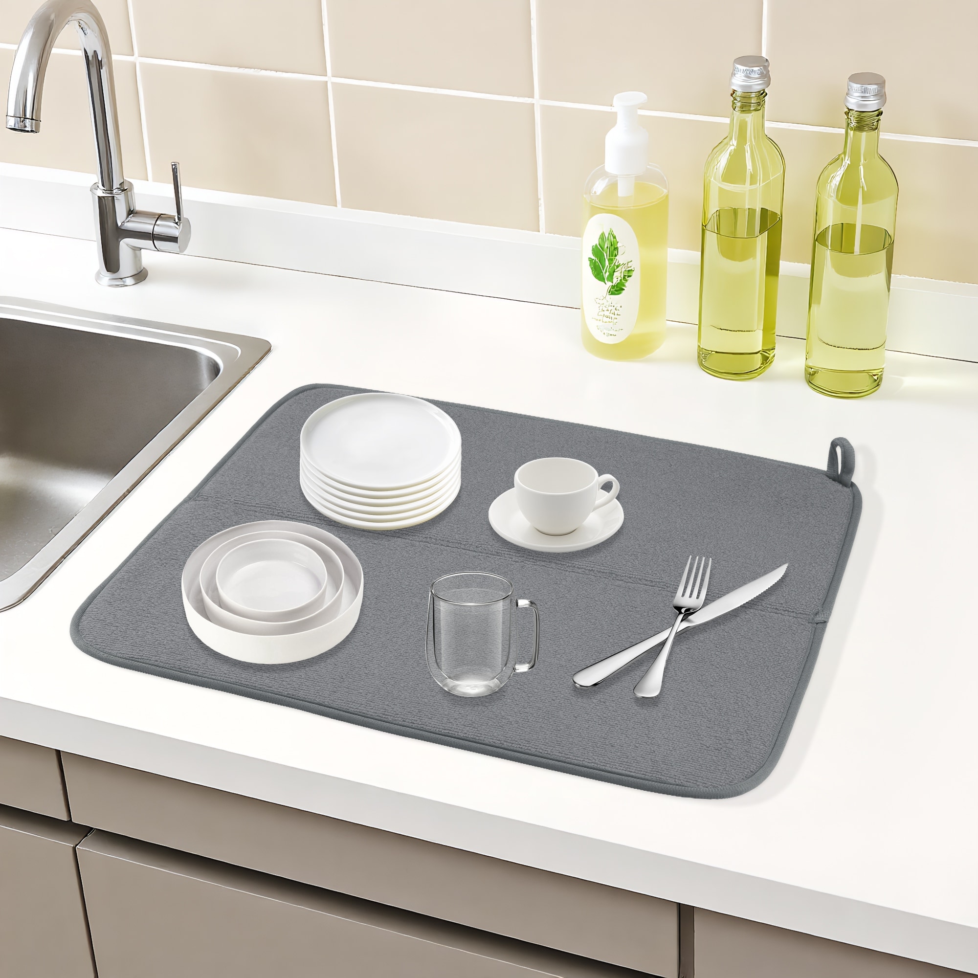 Dish Drying Mat, Absorbent Microfiber Kitchen Mat, Foldable Stone Drying Mat for Kitchen Counter, Utensils, Pots and Pans