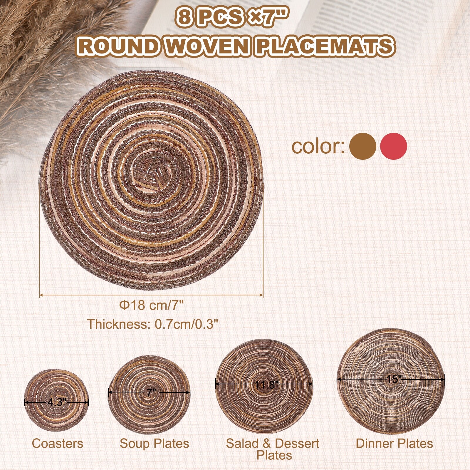 Round Woven Placemats, Braided Washable Placemat Heat Resistant Decorative Place Mat for Kitchen Dining Table Countertop
