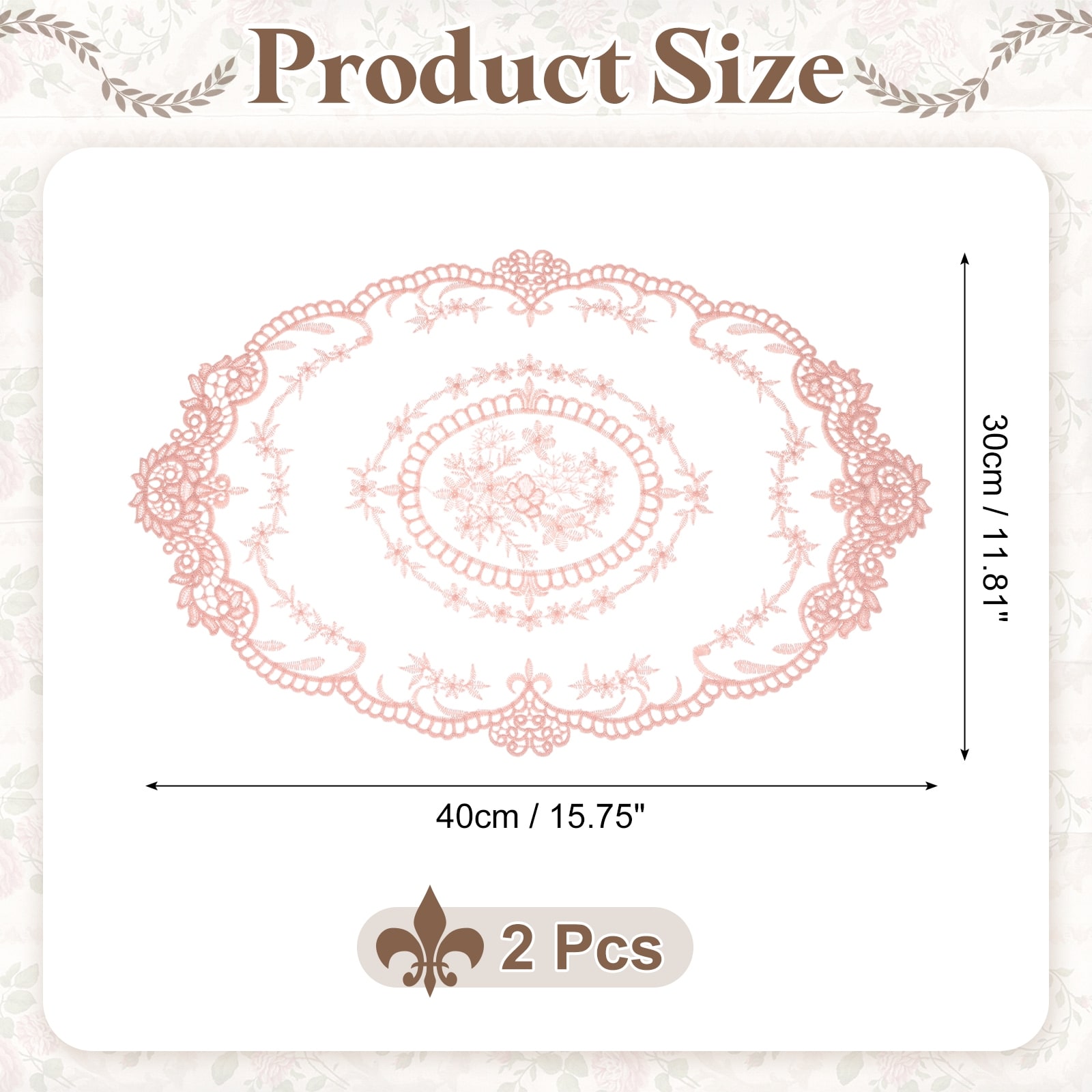 2 Pcs Lace Placemats, 15.7x6.2Inches Vintage Table Doilies Oval Embroidered Crochet Lace Dolly Cup Mat for Home Decor