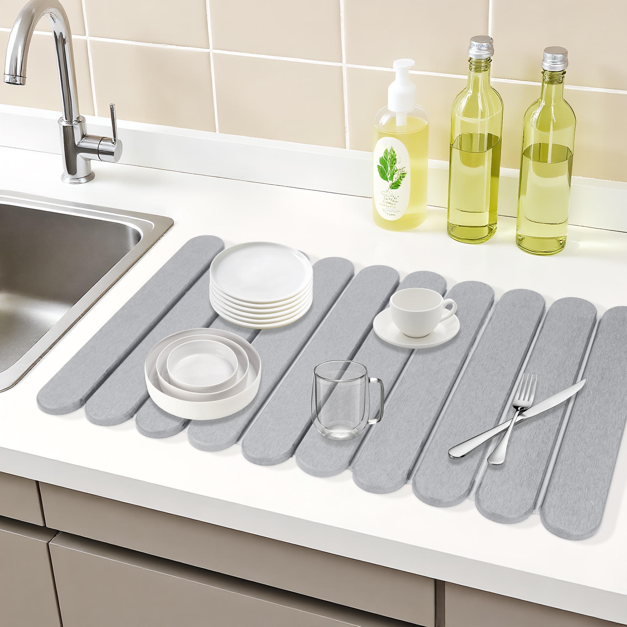 Foldable Diatomaceous Stone Dish Drying Mat, Quick Dry Dish Drying Mats for Kitchen Counter, Dishes, Cups, and Utensils