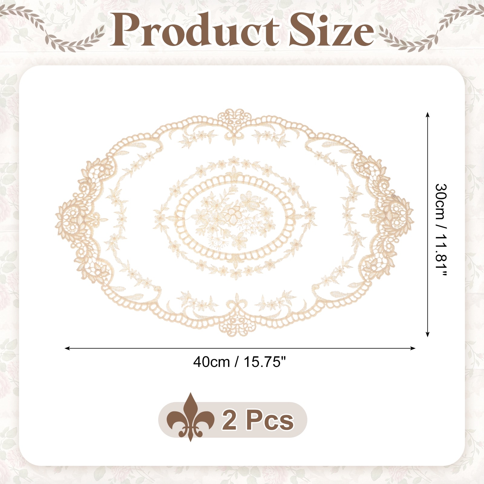 2 Pcs Lace Placemats, 15.7x6.2Inches Vintage Table Doilies Oval Embroidered Crochet Lace Dolly Cup Mat for Home Decor