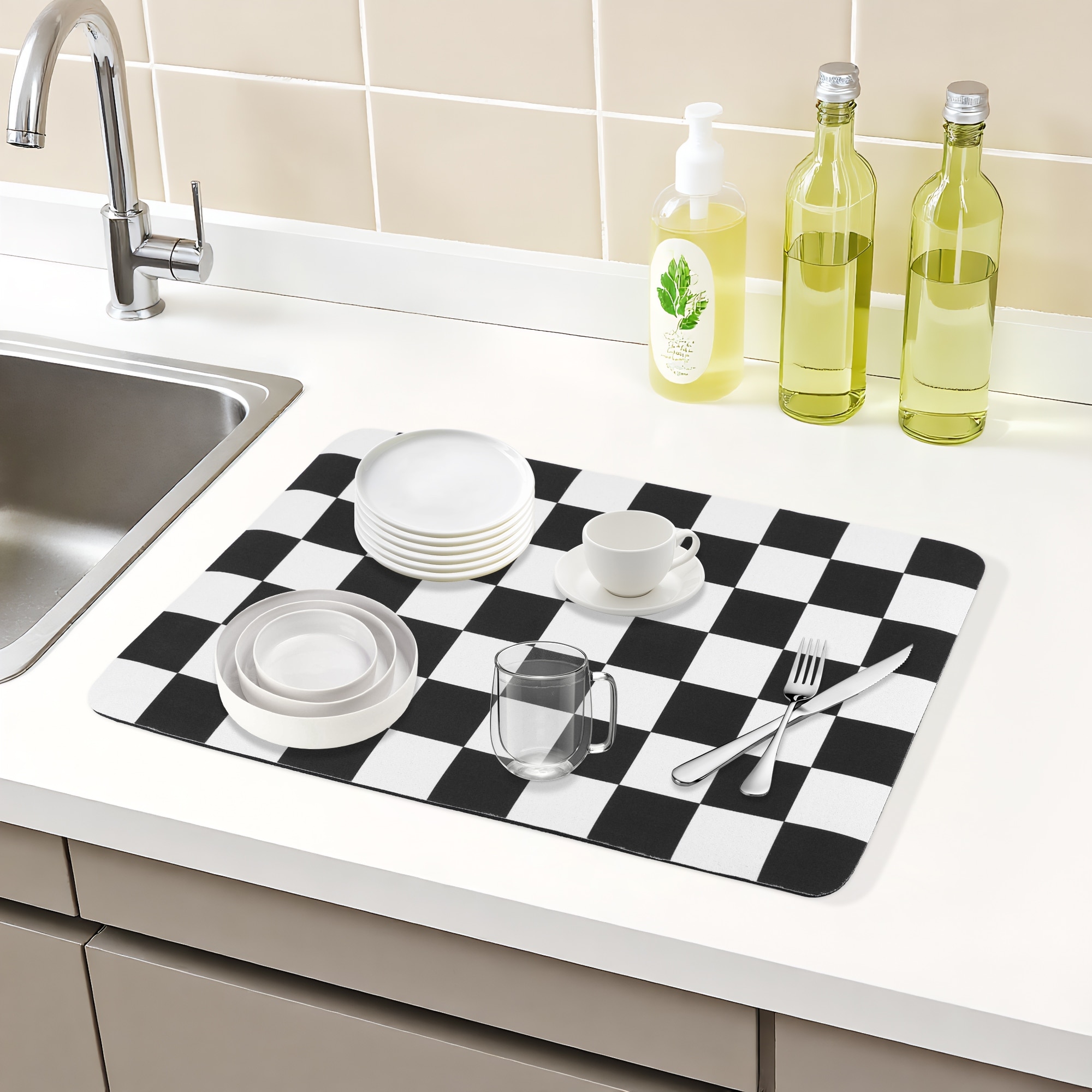 Diatomaceous Stone Dish Drying Mat, Checkered Quick Dry Dish Drying Mats for Kitchen Counter, Cups, and Utensils