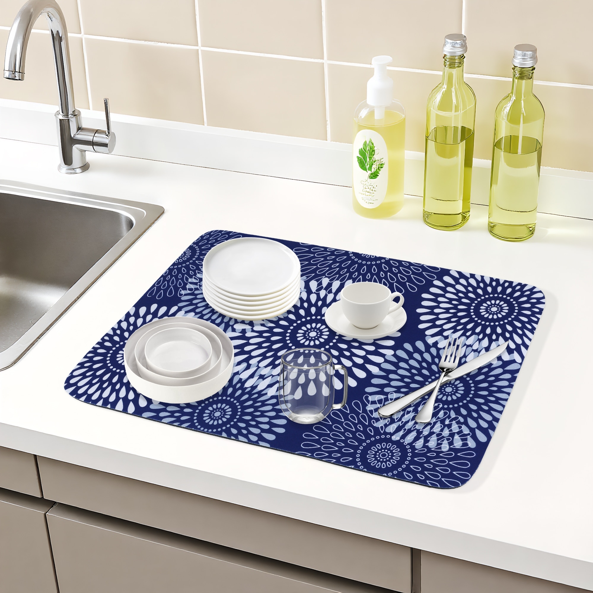 Large Diatomaceous Stone Dish Drying Mat, Floral Quick Dry Dish Drying Mats for Kitchen Counter, Dishes, Cups, and Utensils