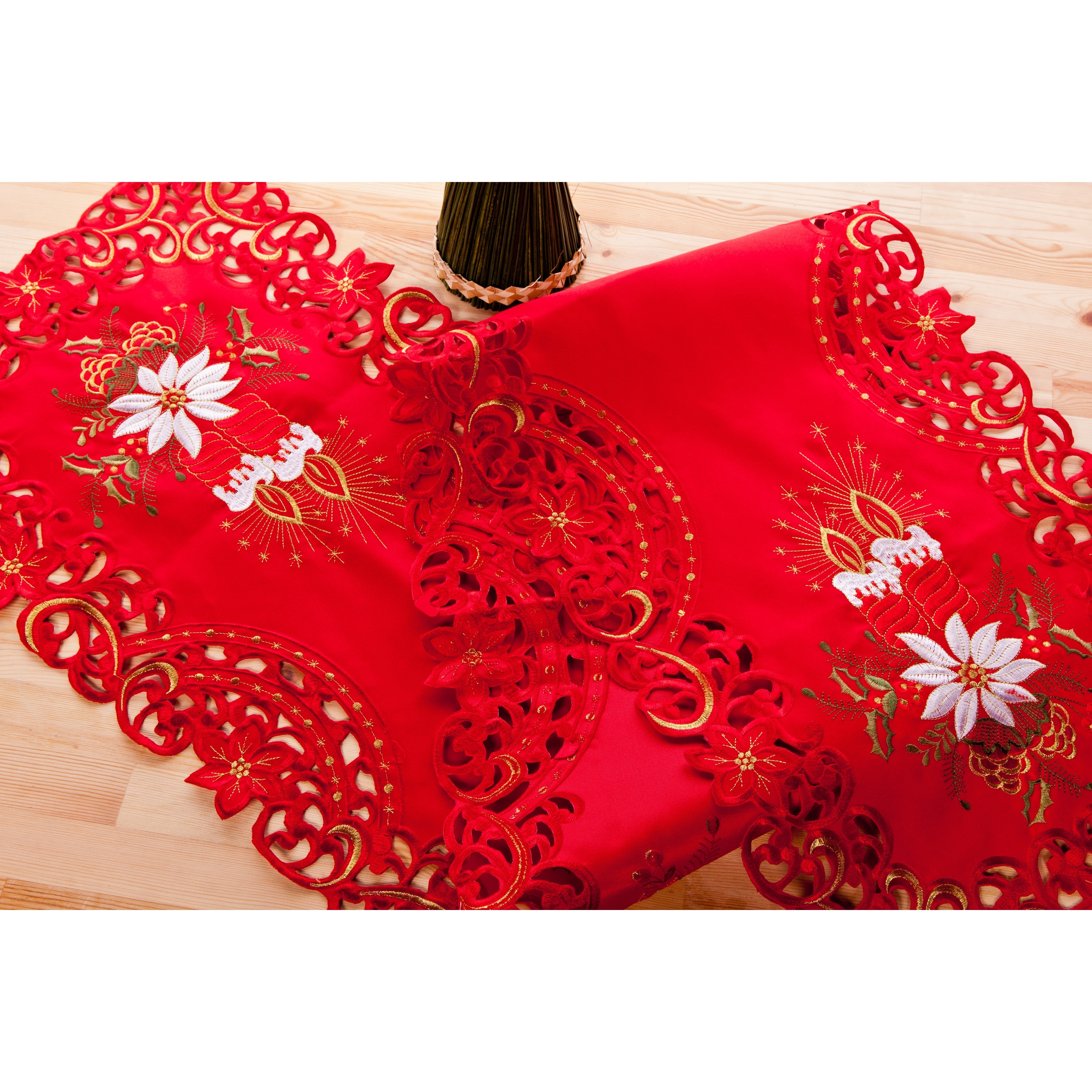 Christmas Red Poinsettia Table Runner and Placemat Set