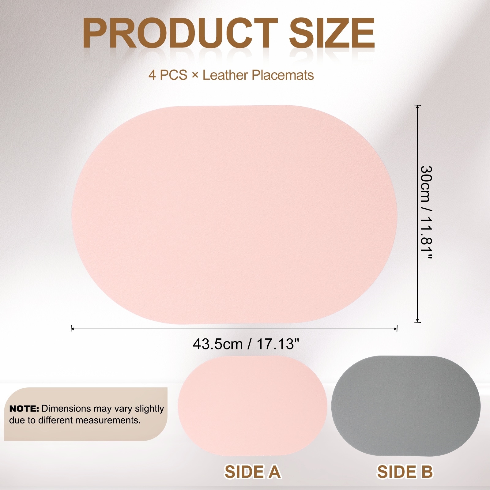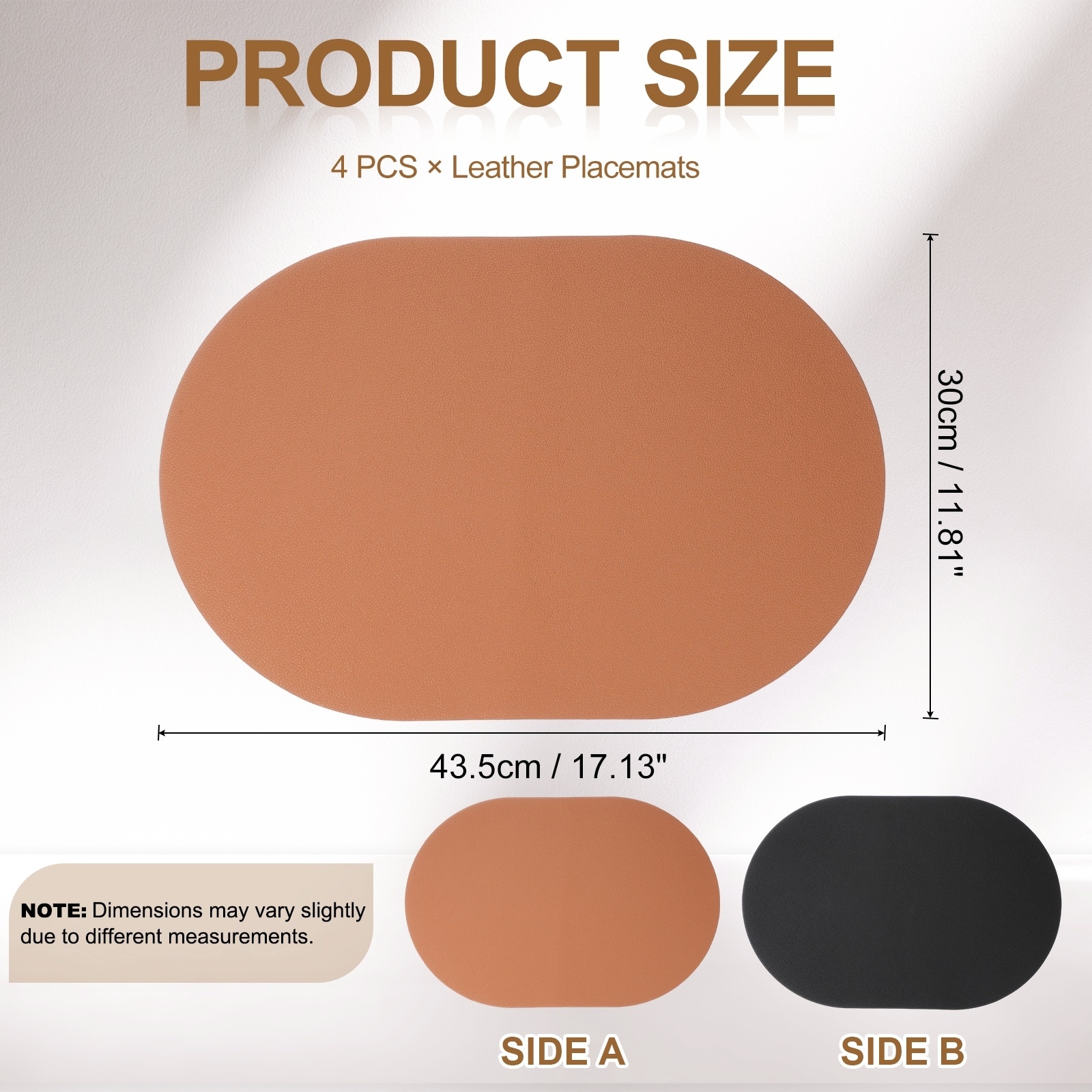 Leather Placemats Sets, PU Leather Dual Sided Oval Non-Slip Table Mats Washable Heat Resistant Waterproof