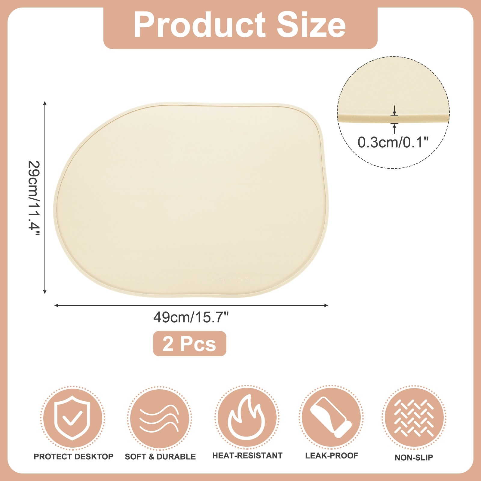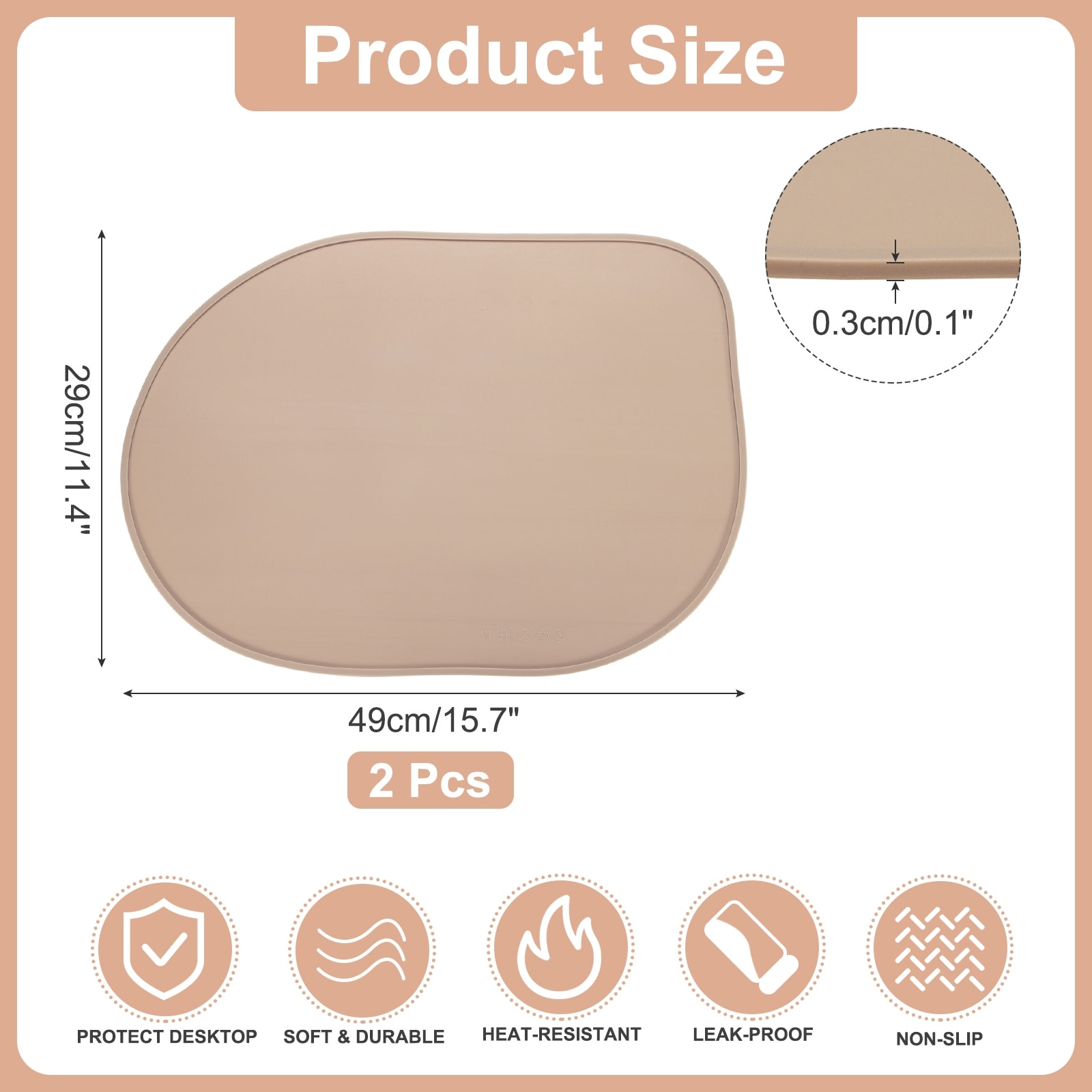 Oval Rectangle Silicone Placemat, Non-Slip Washable Table Placemats Heat Resistant Waterproof Mat with High Edge for Kitchen
