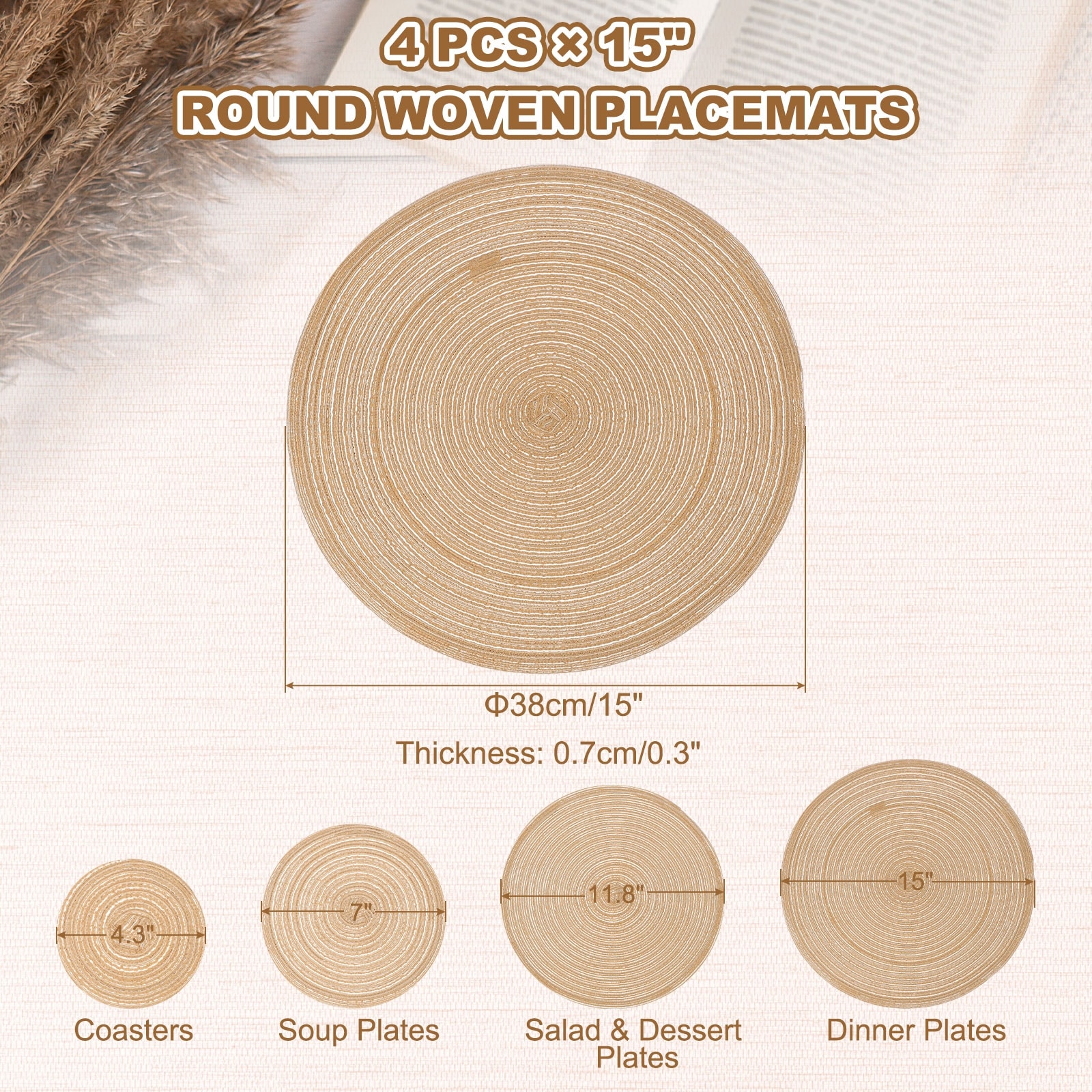Round Woven Placemats, Braided Washable Placemat Heat Resistant Decorative Place Mat for Kitchen Dining Table