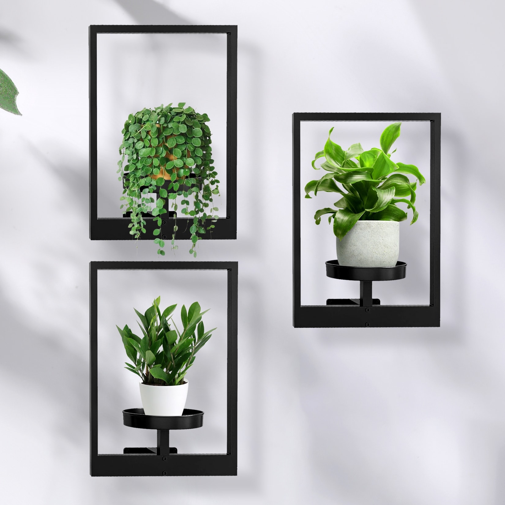 3-Pack Square Wall Plant Shelves, Geometric Indoor Flower Display with 6.22" Tray, Holds Up to 20Lbs.
