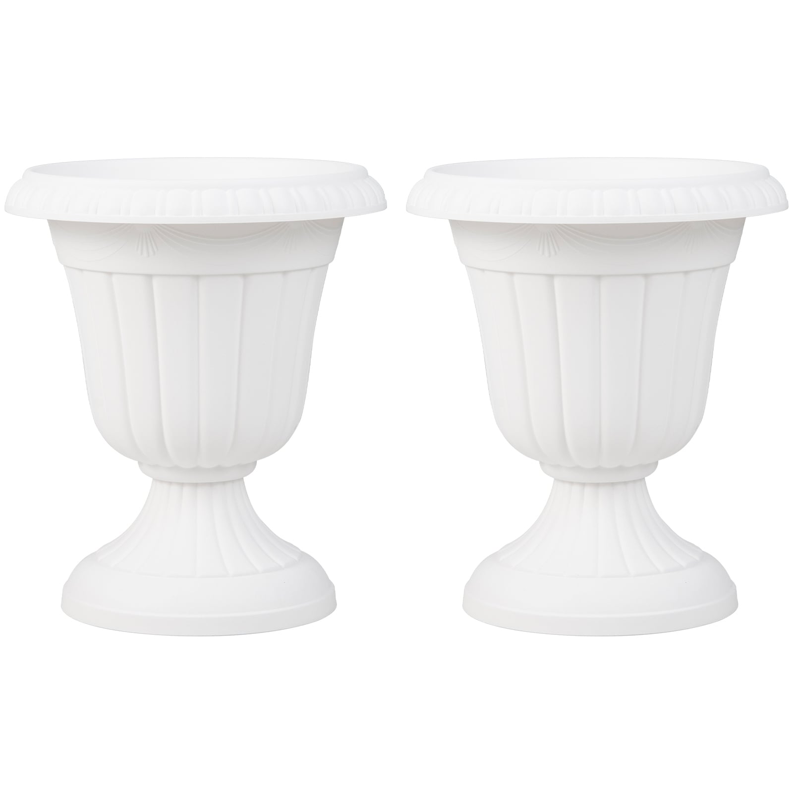 White PP Decorative Urn Planters Set of 2 with Classic Antique Design - 16" x 18.5"