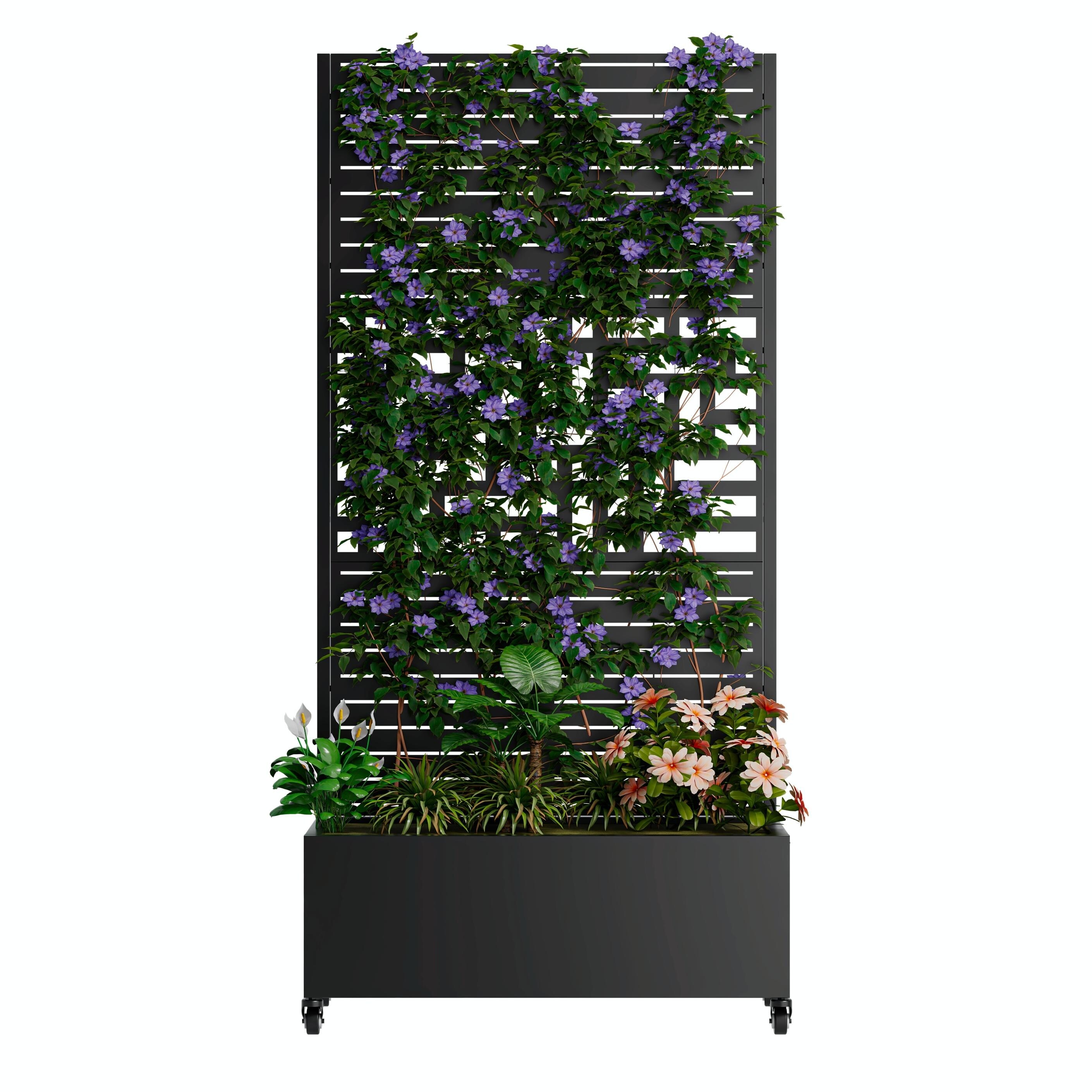 Metal Planter Box with Trellis Privacy Screen Lockable Wheels