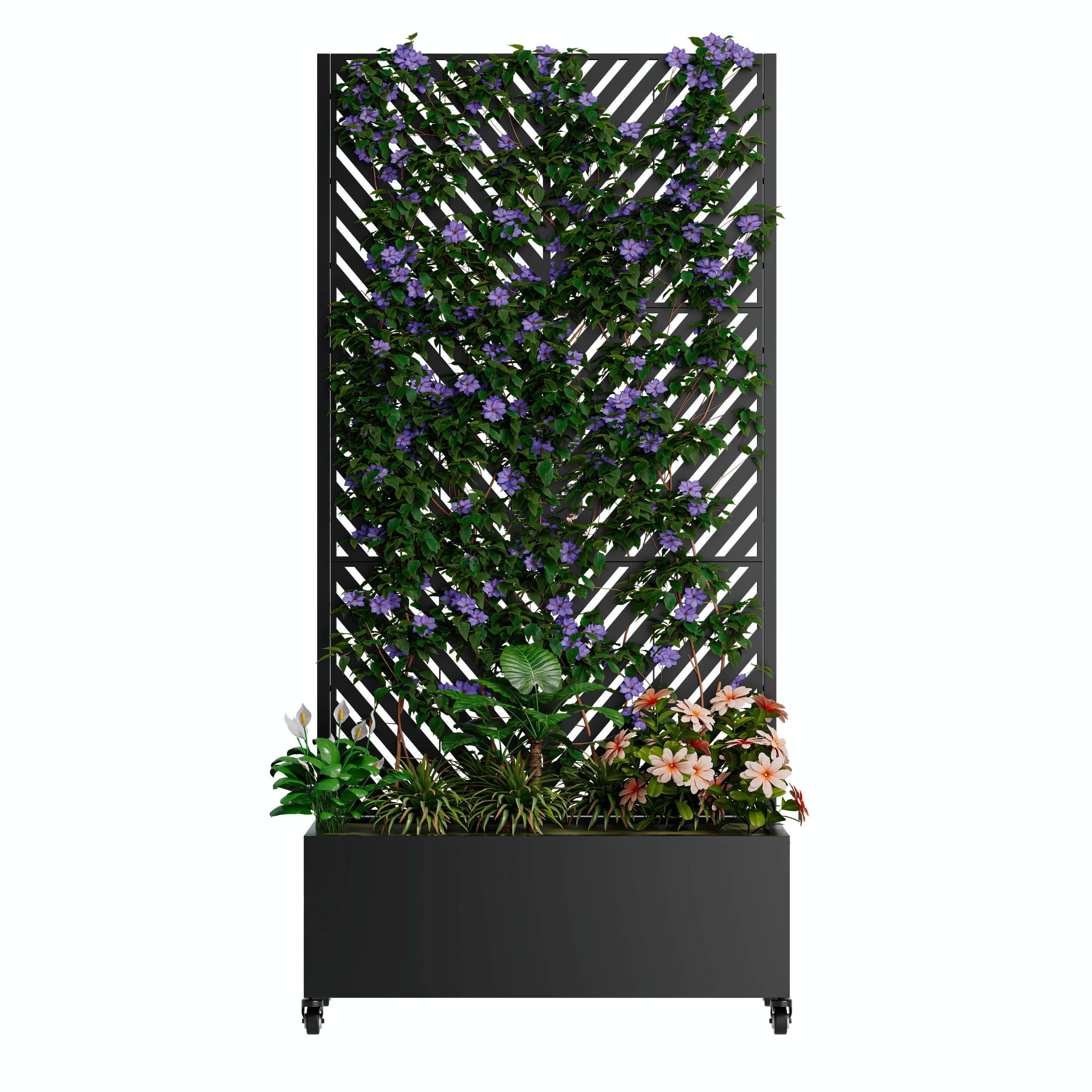 Metal Planter Box with Trellis and Wheels - 35.4" W * 15.7"D * 73.2" H