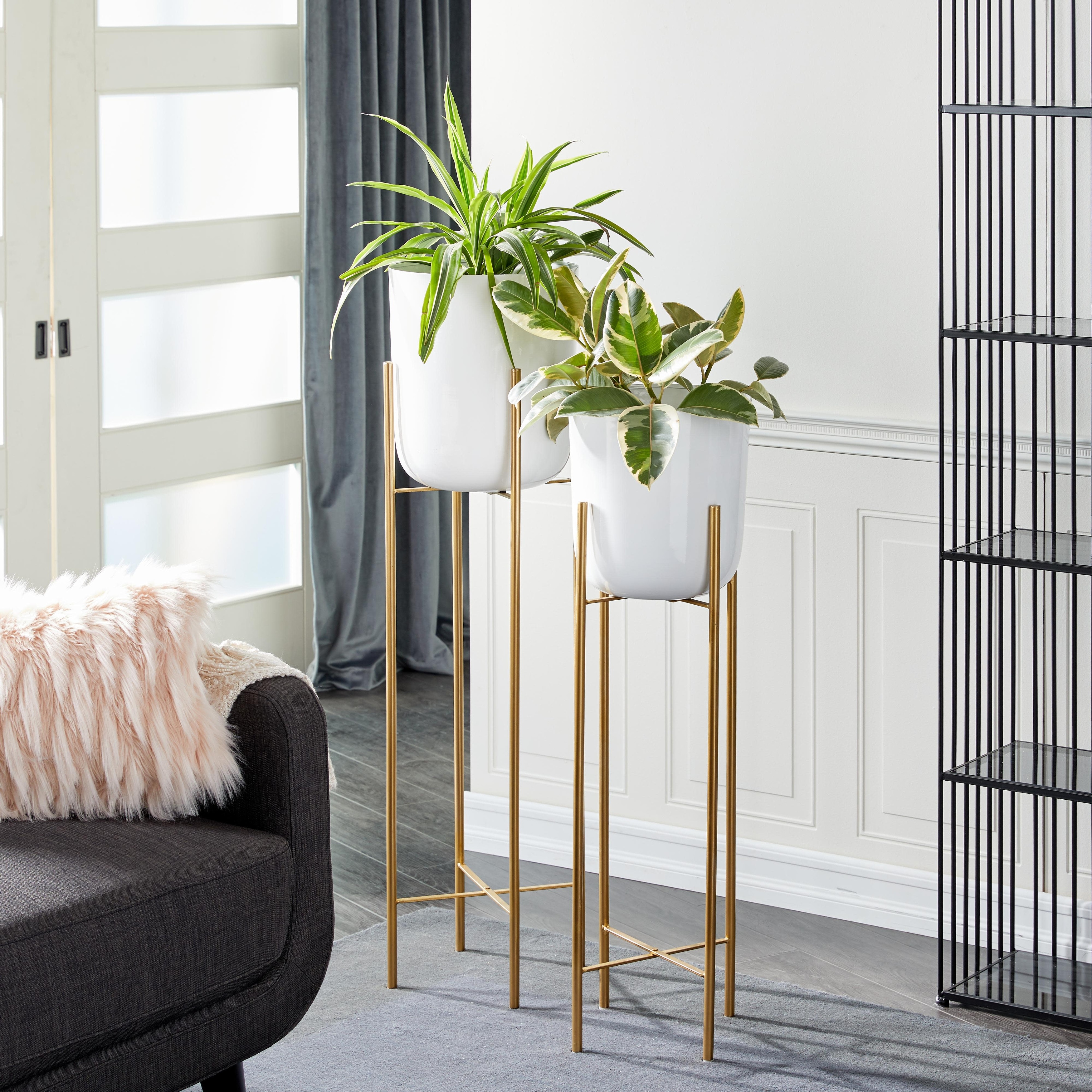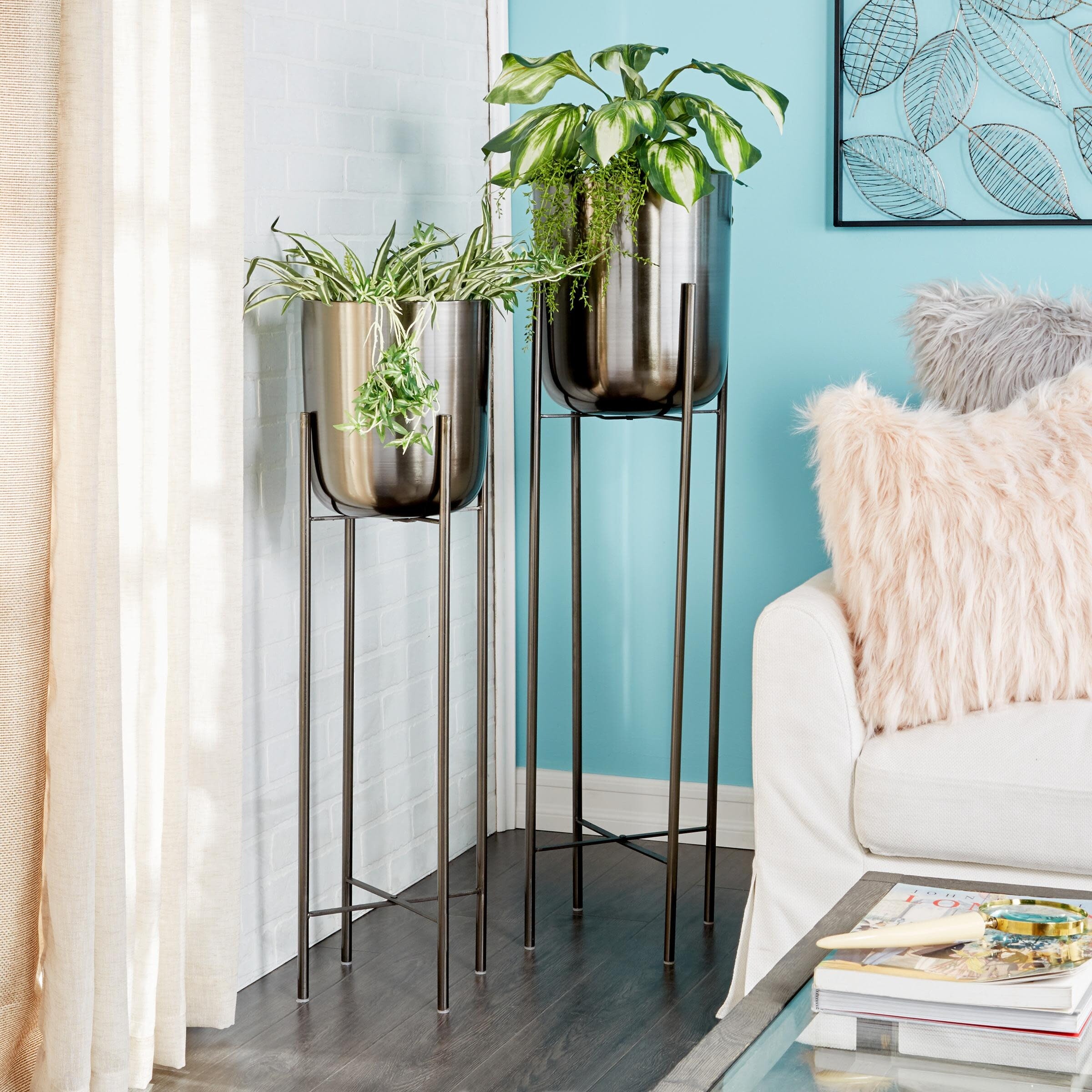 CosmoLiving by Cosmopolitan Gold, Silver, Black, or White Metal Dome Indoor Outdoor Planter with Removable Stand (Set of 2)