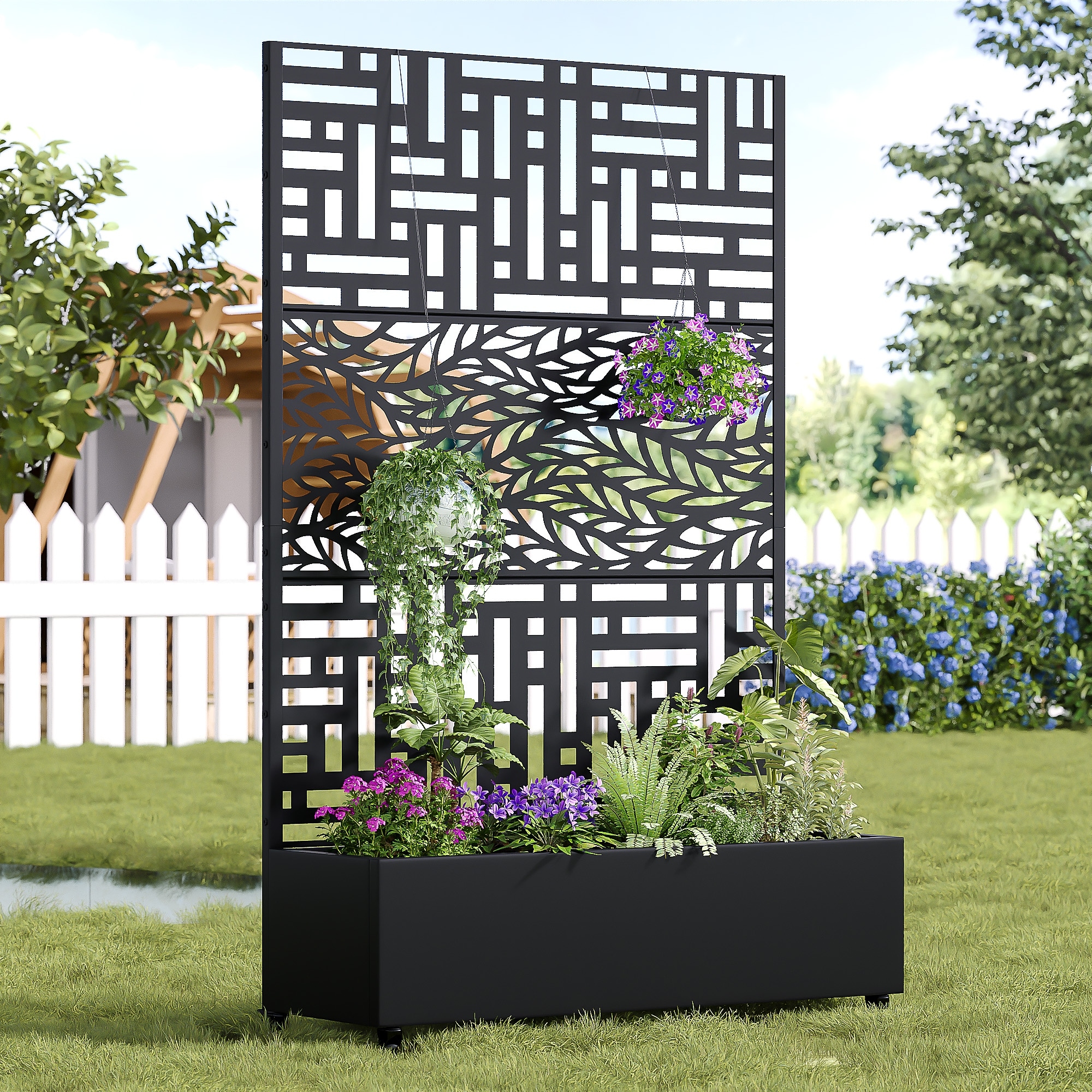 Metal Movable Planter Box with Trellis Privacy Screen Planter Box with Lockable Wheels