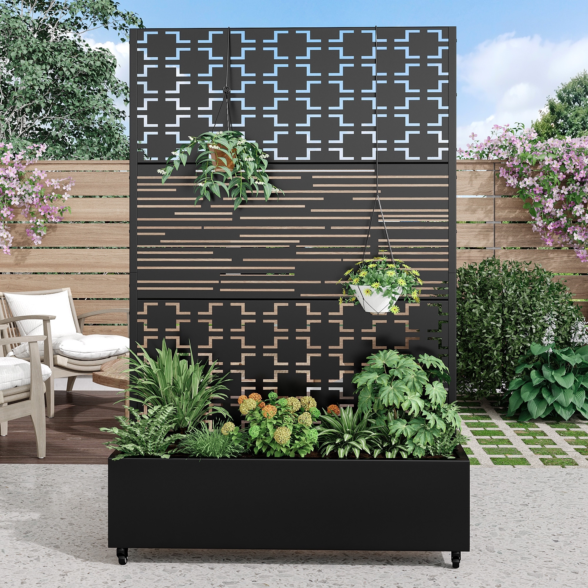 Metal Movable Planter Box with Trellis Privacy Screen Planter Box with Lockable Wheels