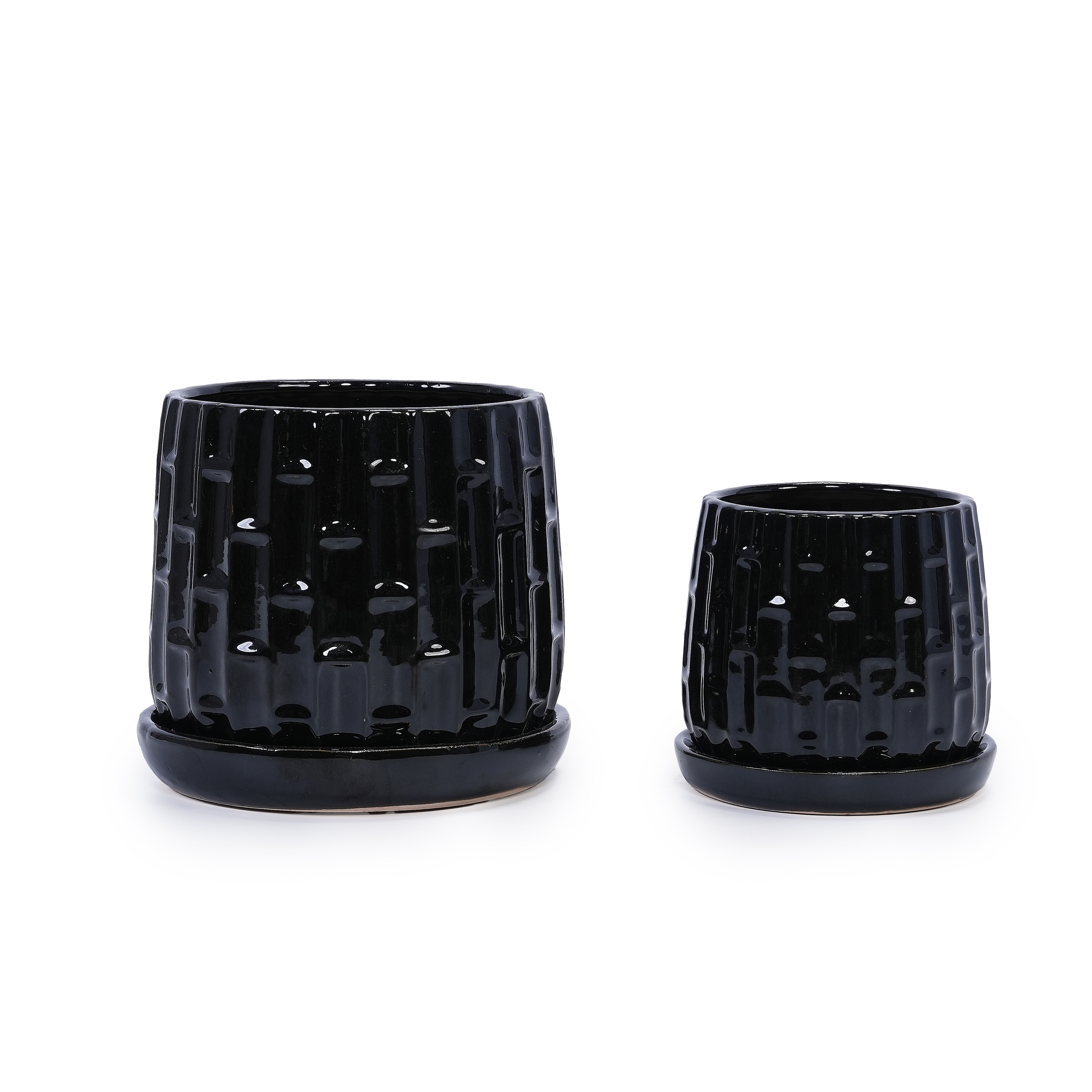 Handmade Ceramic Flower Pot with Groove Pattern for Orchids, Indoor/Outdoor Use