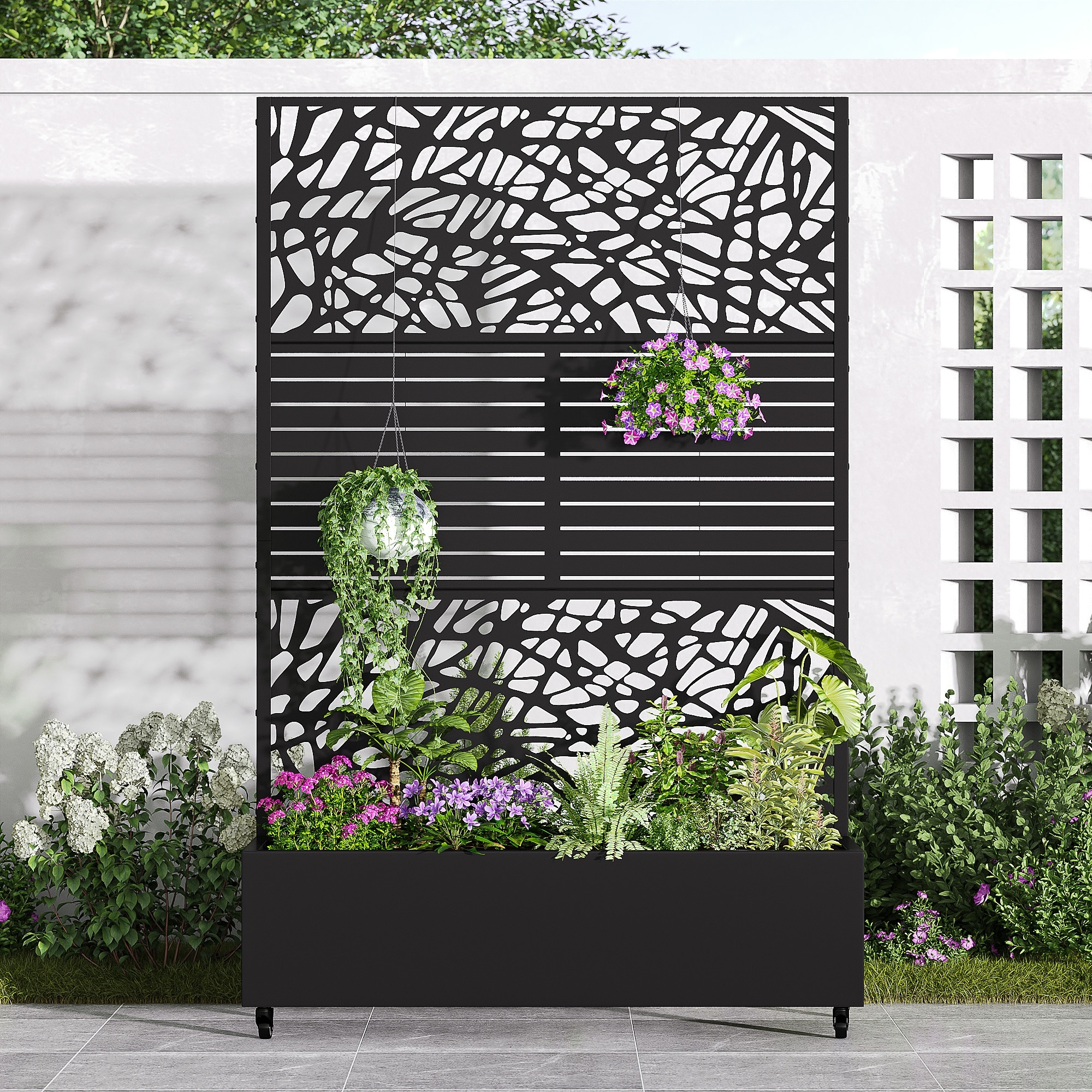 Metal Movable Planter Box with Trellis Privacy Screen Planter Box with Lockable Wheels