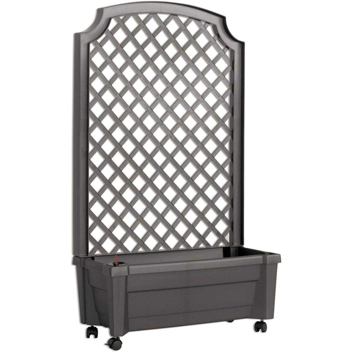Grey Plastic Self-Watering Garden Planter with Trellis and Wheels Outdoor - 31 W x 13.50 D x 53 H inches