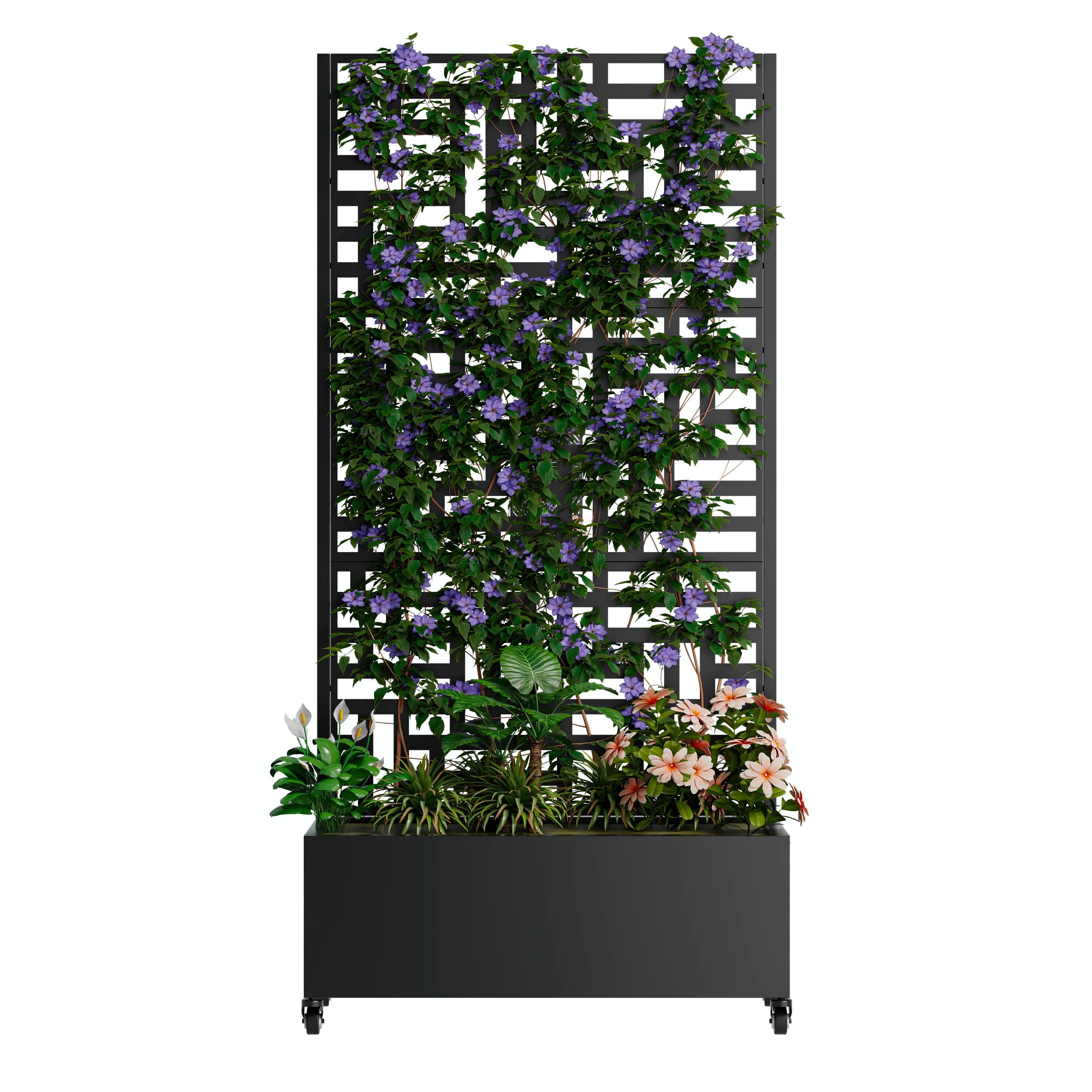 Metal Planter Box with Trellis and Wheels - 35.4" W * 15.7"D * 73.2" H