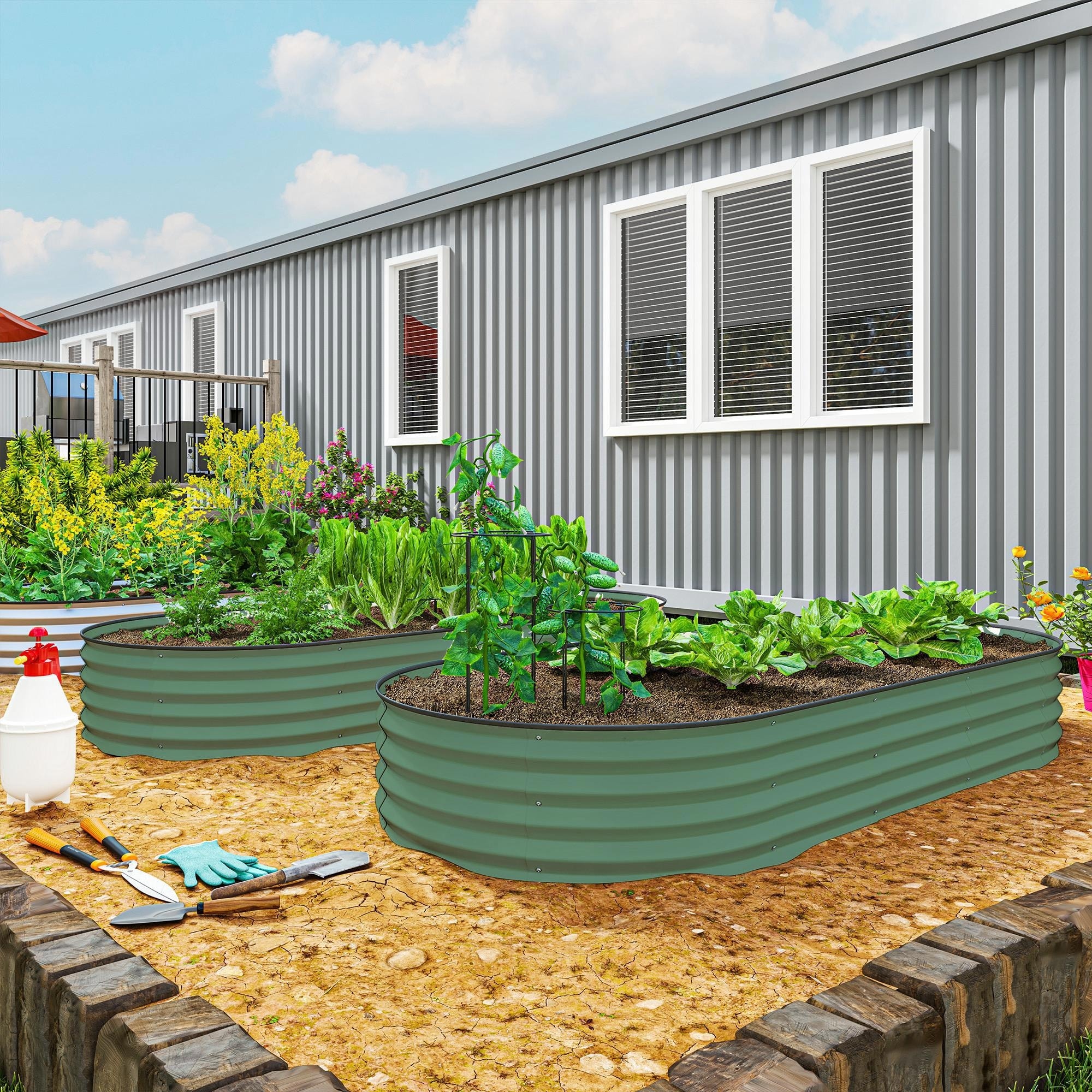 Galvanized Raised Garden Bed Kit, Outdoor Metal Elevated Planter Box with Safety Edging