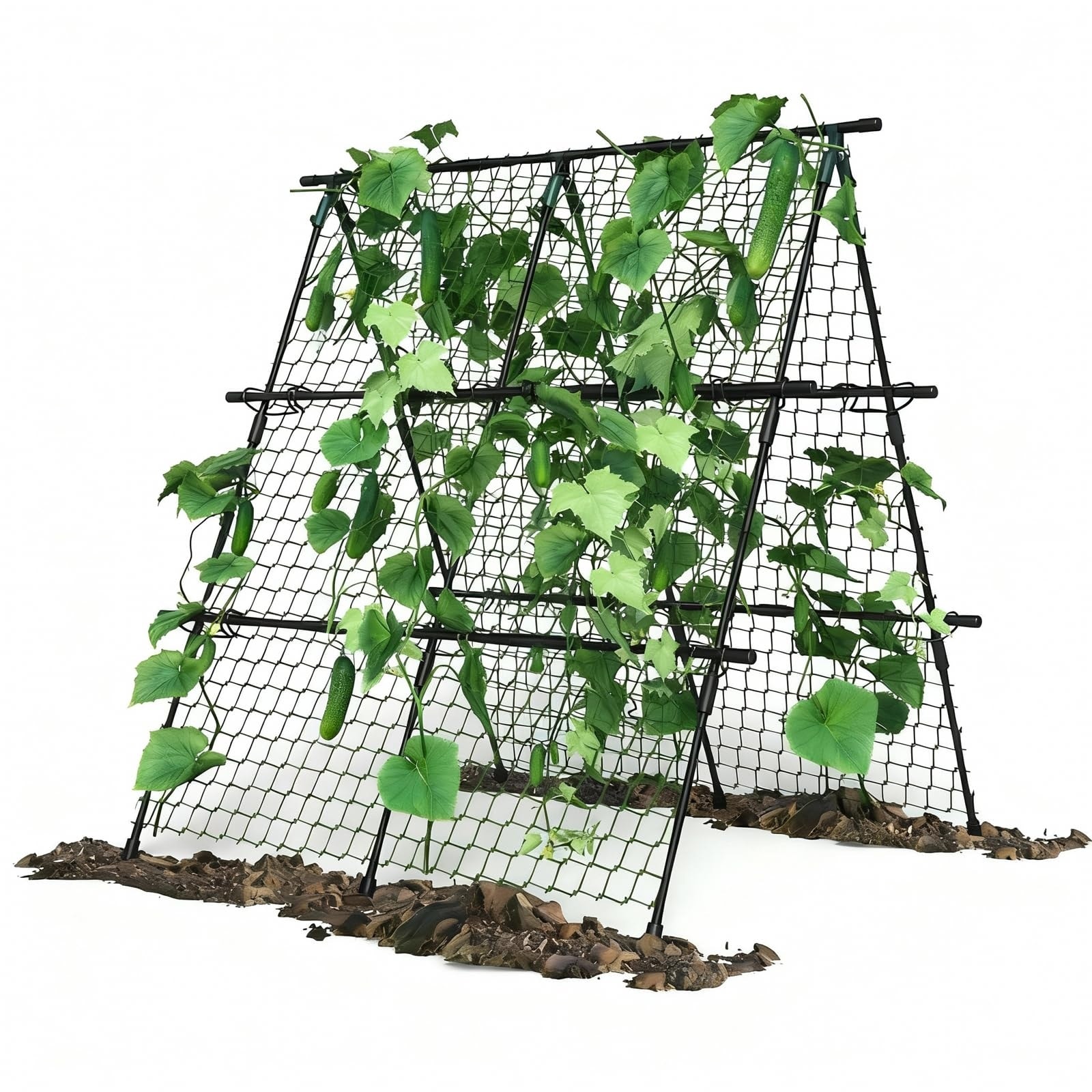 Cucumber Trellis for Garden, Foldable a-Shape Plant Support w/ Climbing Net and Spiral Connectors - 47x47in