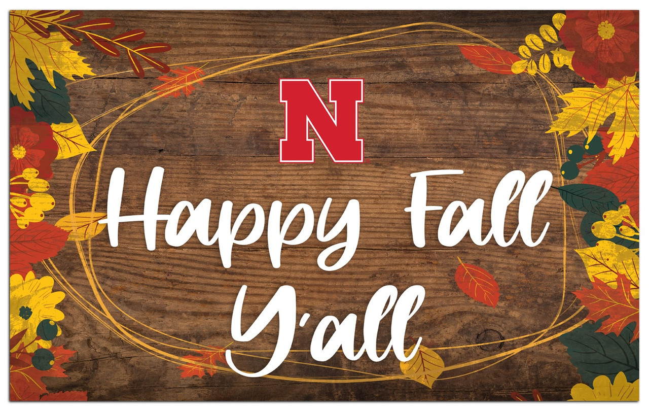 Nebraska Cornhuskers Happy Fall Y'all 11" x 19" Sign
