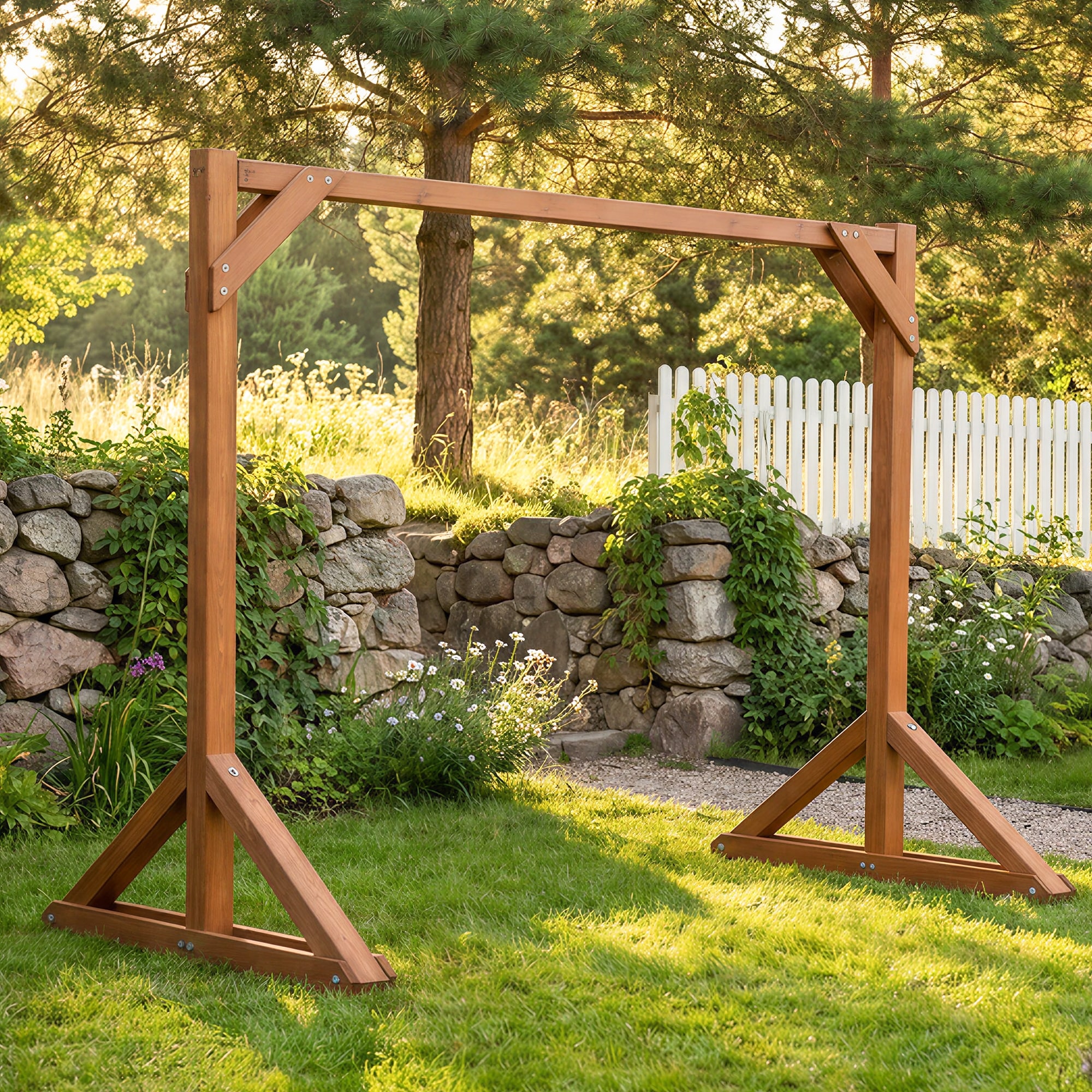 Wooden Outdoor Swing Stand for Porch and Garden, Brown - 83.8" L × 55.1" W × 70.9" H