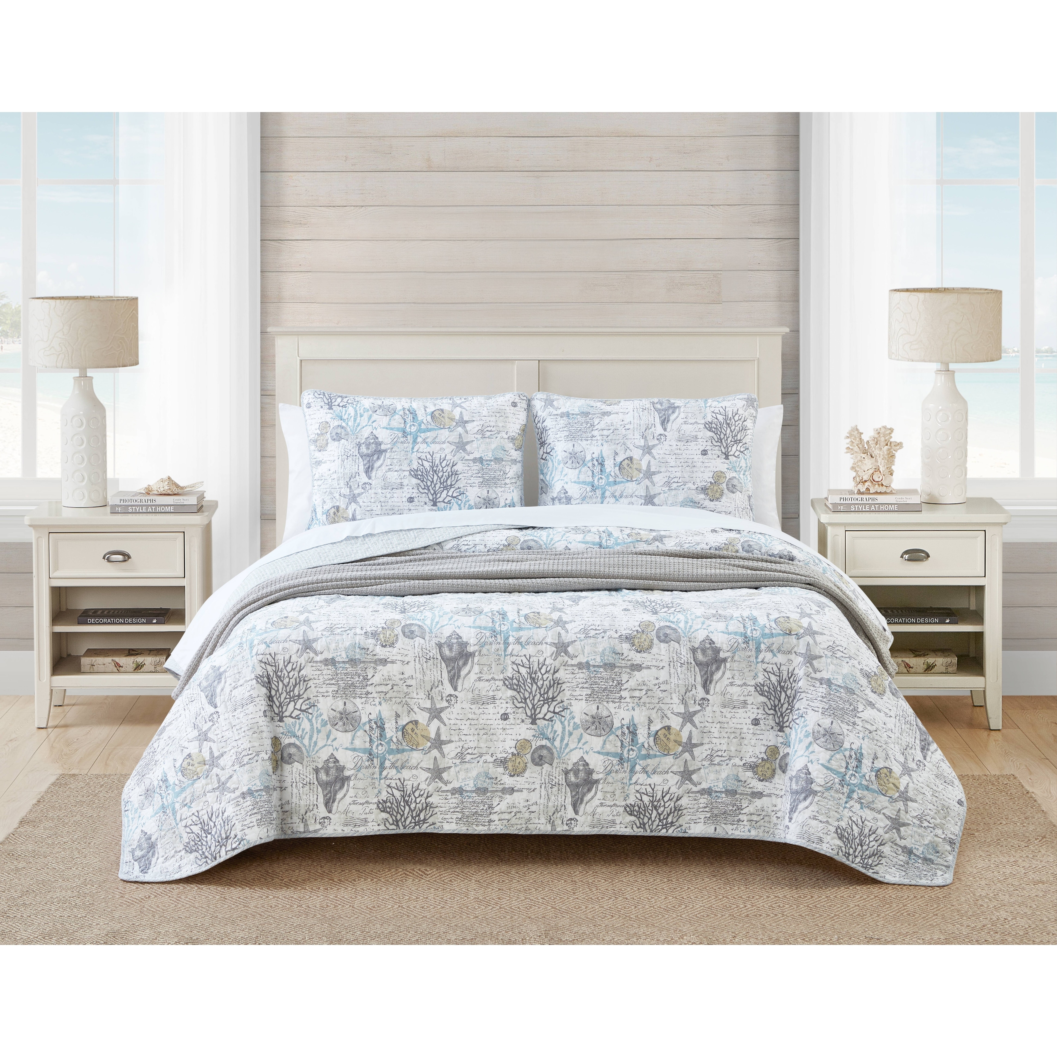Tommy Bahama Beach Bliss Prewashed Reversible Cotton Bedding (Grey, 3 Piece Set)