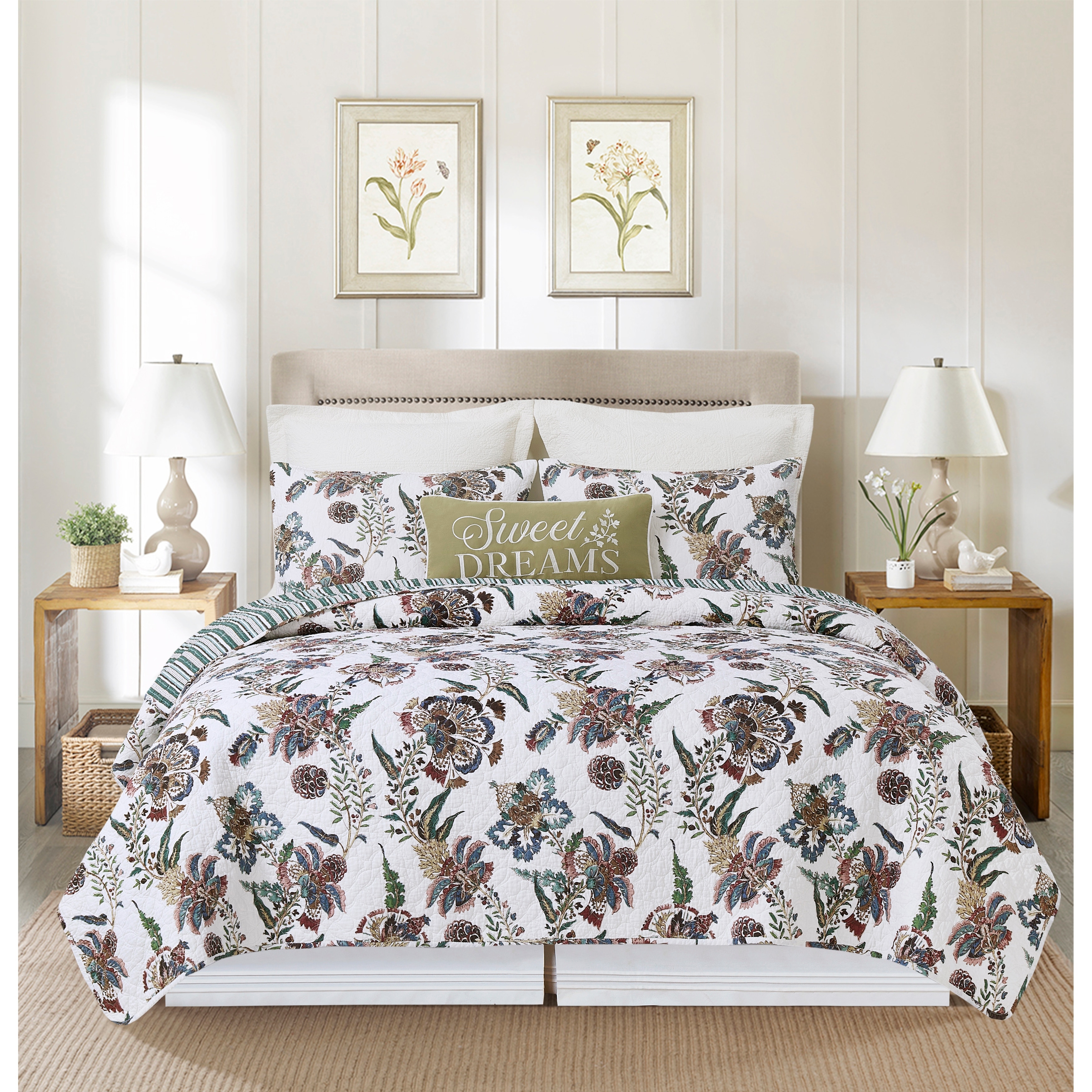 Eddie Bauer Garden Bloom Cotton Lightweight Reversible Green Quilt Set