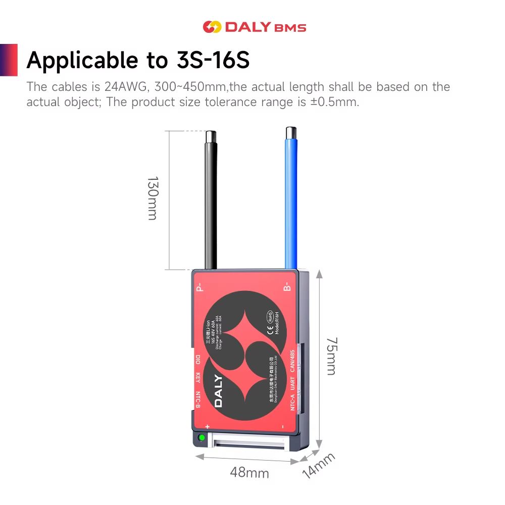 DALY Smart BMS 3S16S Li ion & LiFePO4 Battery Management System With Balance & NTC (15A100A) lifepo4 12s 36v 60a Ntc