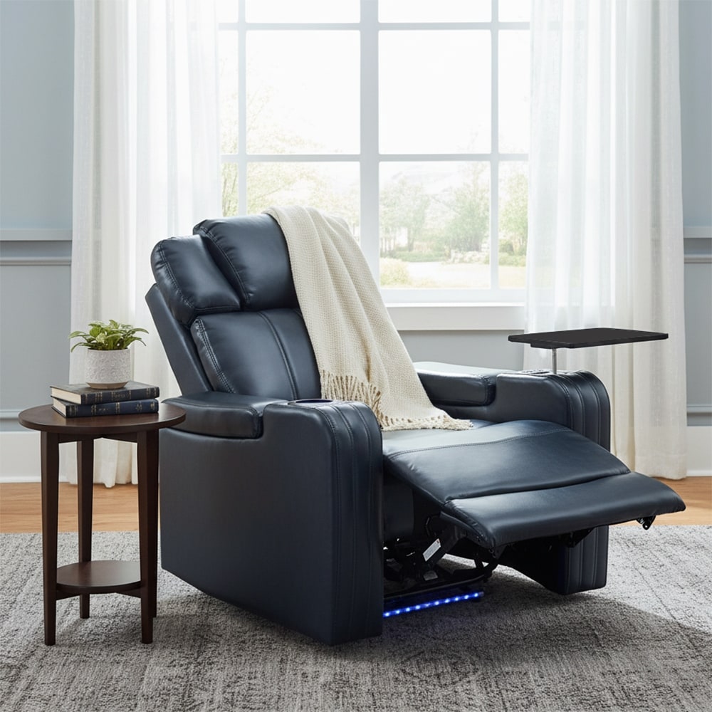 Power PU Leather Recliner with Cooling Cup Holder, Bluetooth Speaker, LED Lights, USB Ports, Tray Table, Storage Armrests