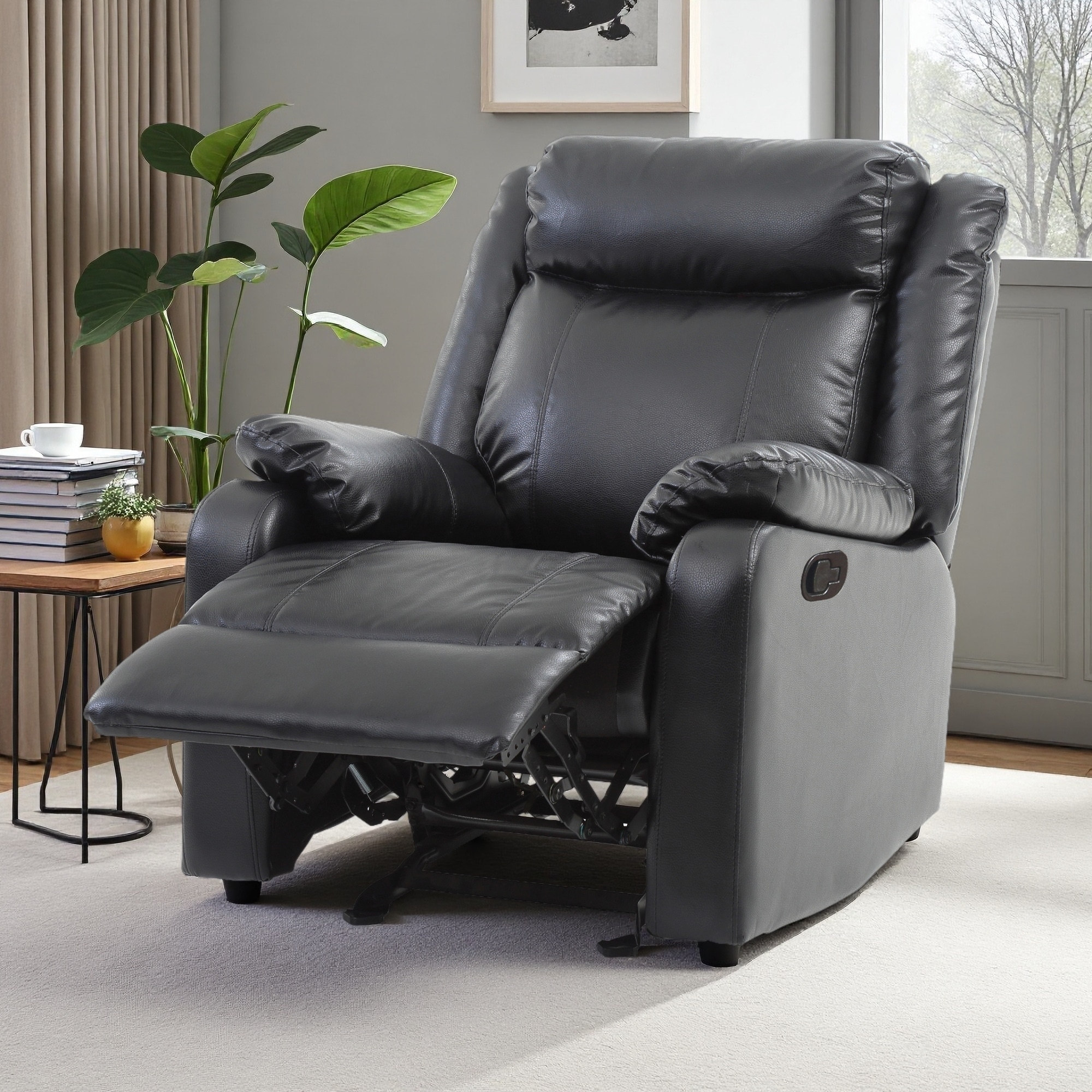 Manual Recliner Chair in Faux Leather for Living Room with Heavy Duty Motion Mechanism, 8 Vibrating Nodes And 3 Massage Modes