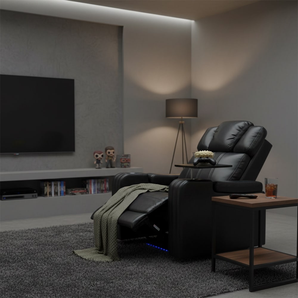 Power PU Leather Recliner with Cooling Cup Holder, Bluetooth Speaker, LED Lights, USB Ports, Tray Table, Storage Armrests