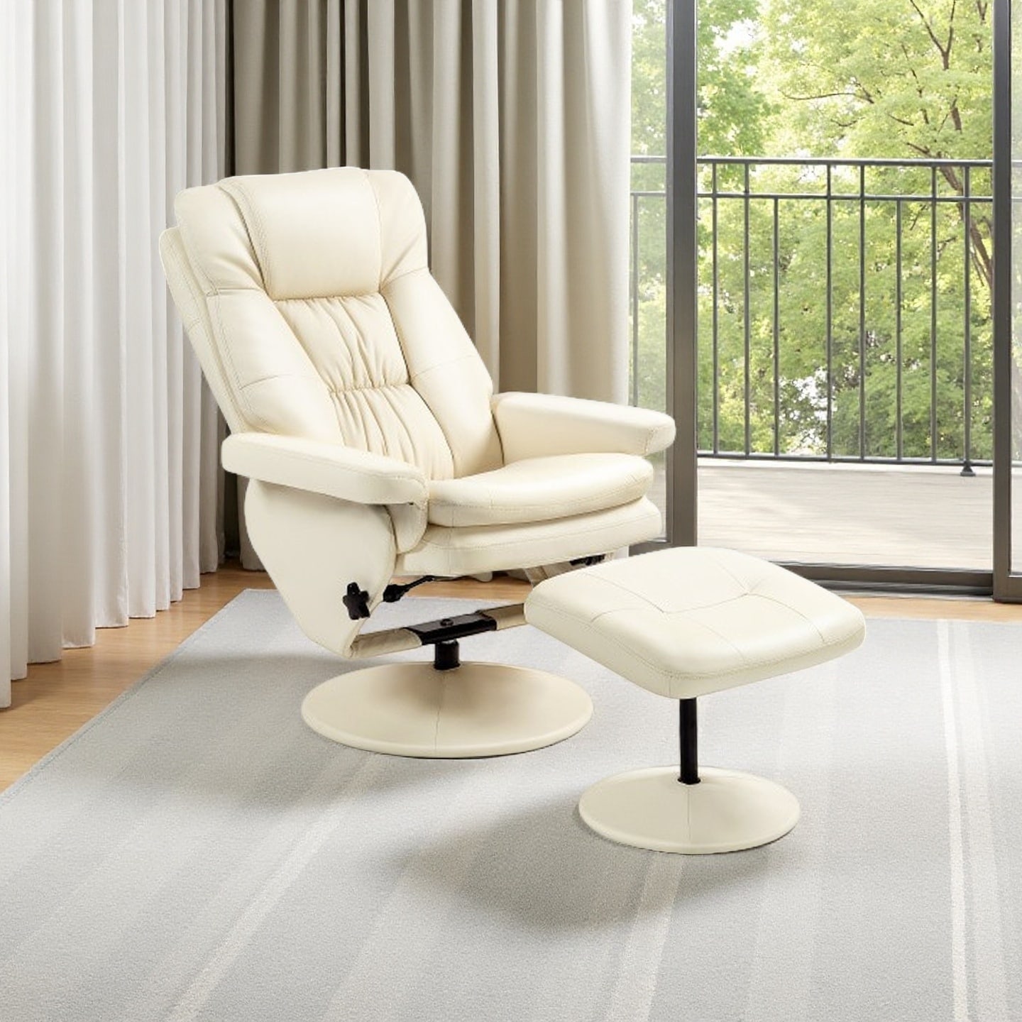Leather Recliner Chair with Ottoman, Swivel Lounge Chair with Adjustable Backrest, Padded Cushions, and Wrapped Base