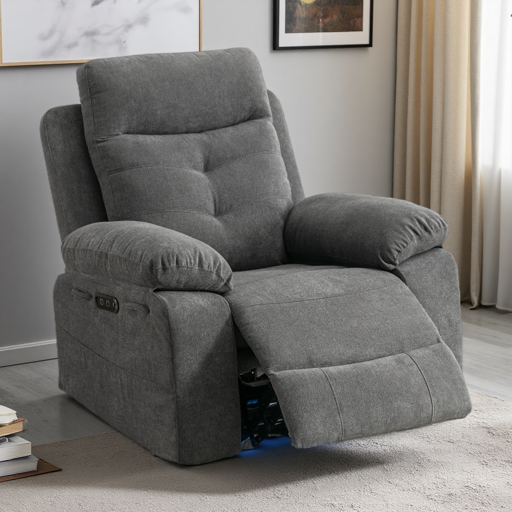 Linen Power Recliner Glider Chair with Bluetooth, 270° Swivel & LED Light