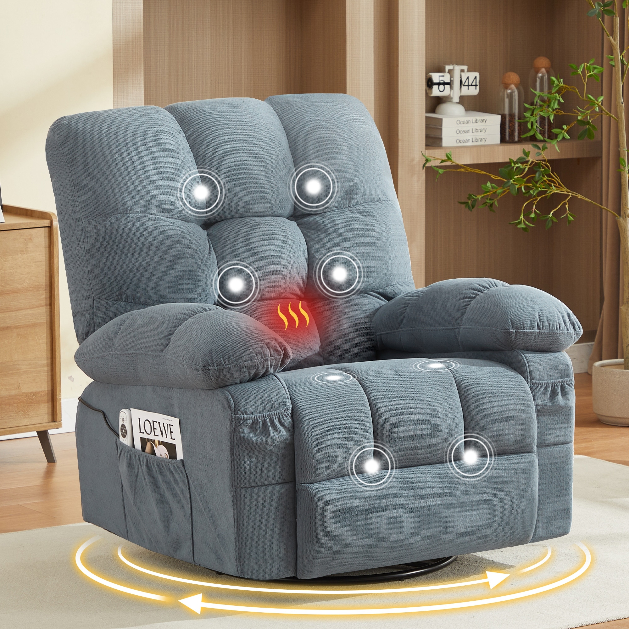 Heat Massage Manual Recliner Chair with Rocker and Swivel in Fabric