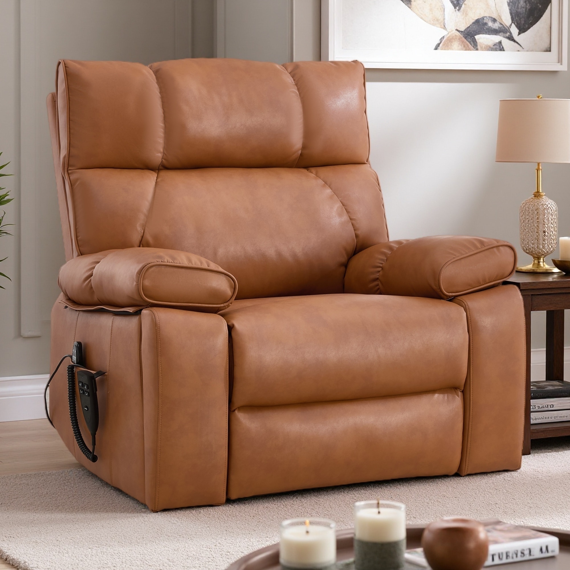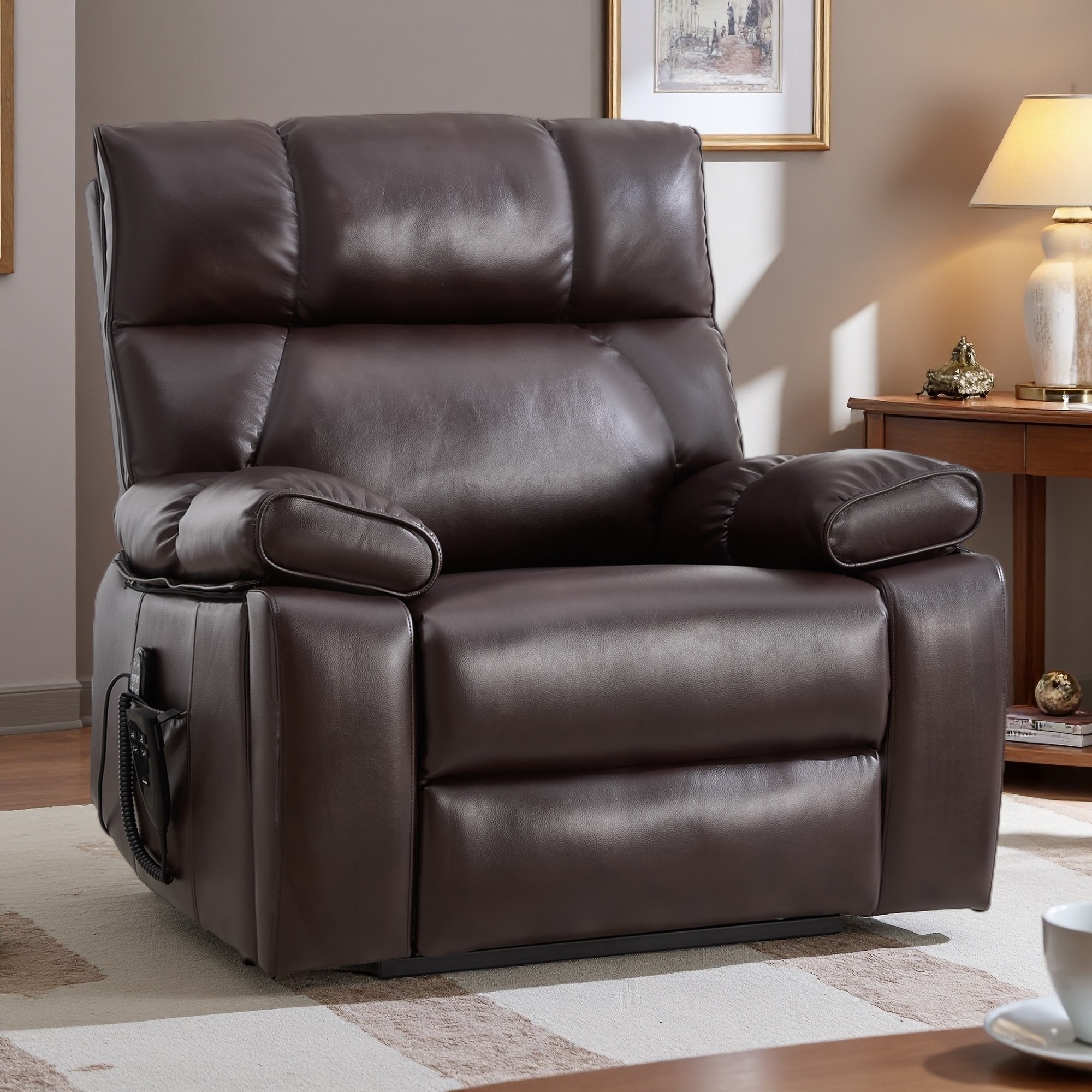 Faux Leather Power Reclining Lift Chair with Memory Foam Cushioning