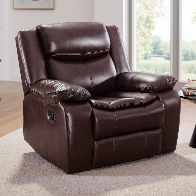 Leather Manual Recliner Chair with Pillow Armrests & Pocket Spring Seat