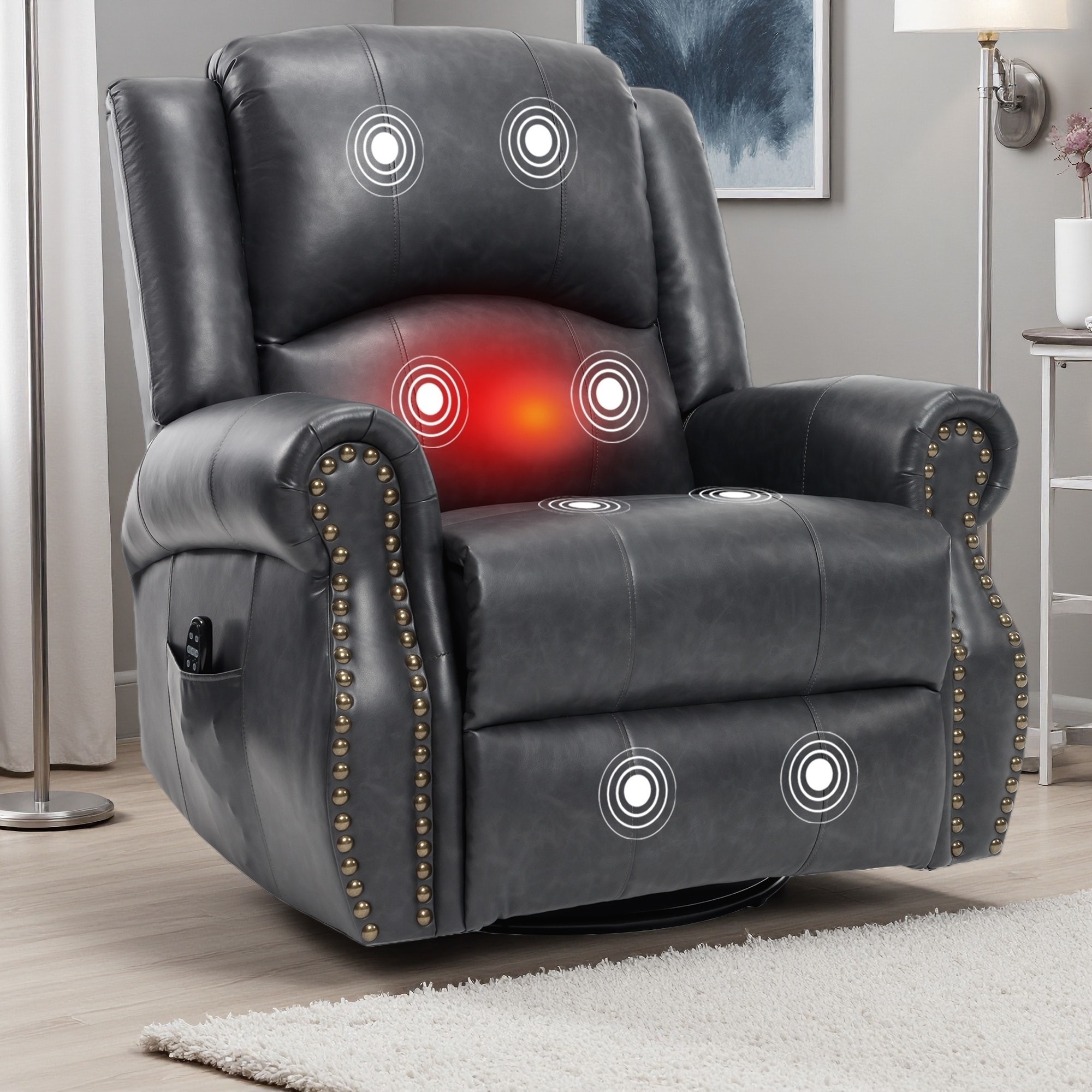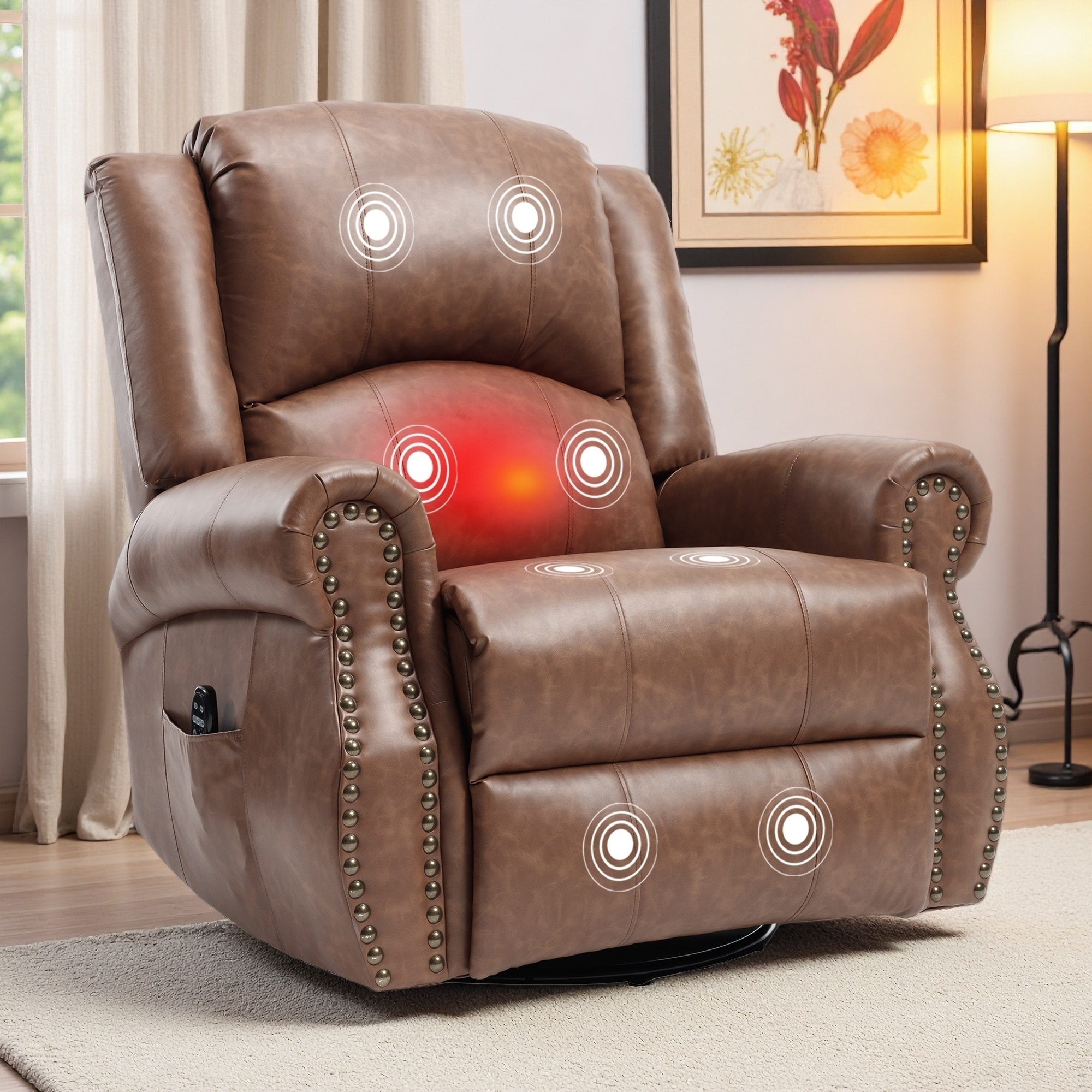 Faux Leather Manual Recliner with Swivel & Heat Massage