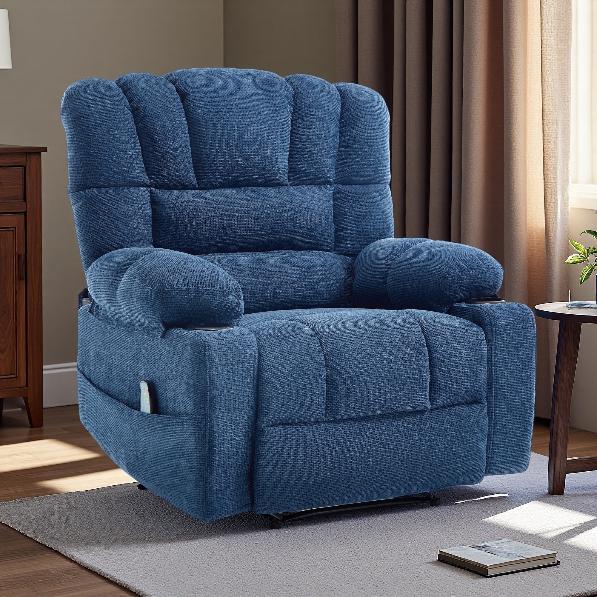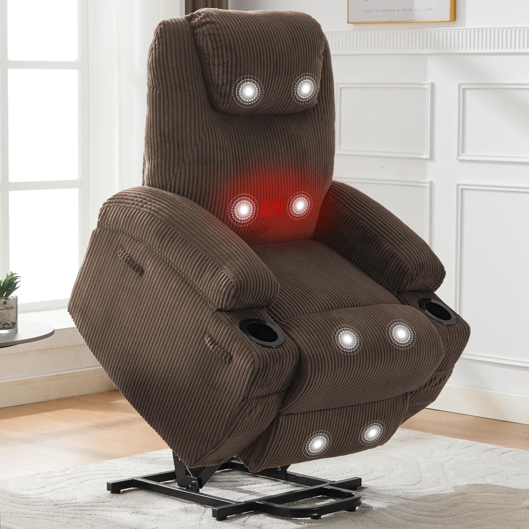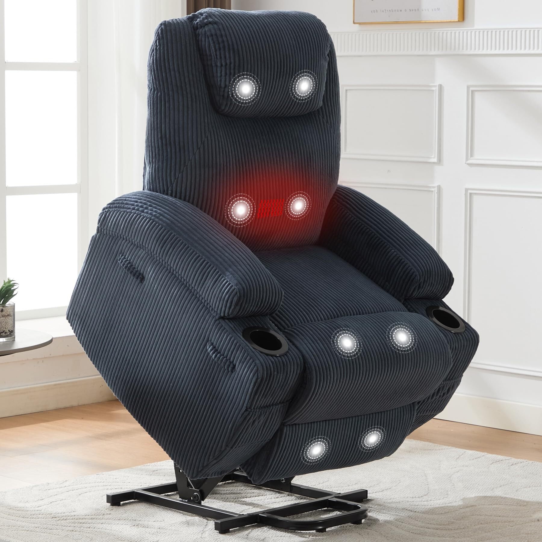 Power Lift Recliner Chair with Massage and Heat, Overstuffed Wide Recliners, with USB and Type C Ports, 2 Steel Cup Holders
